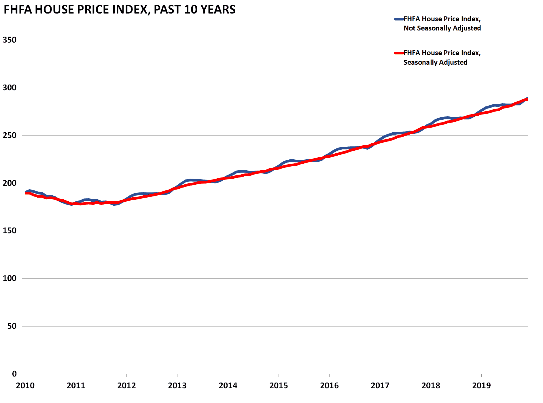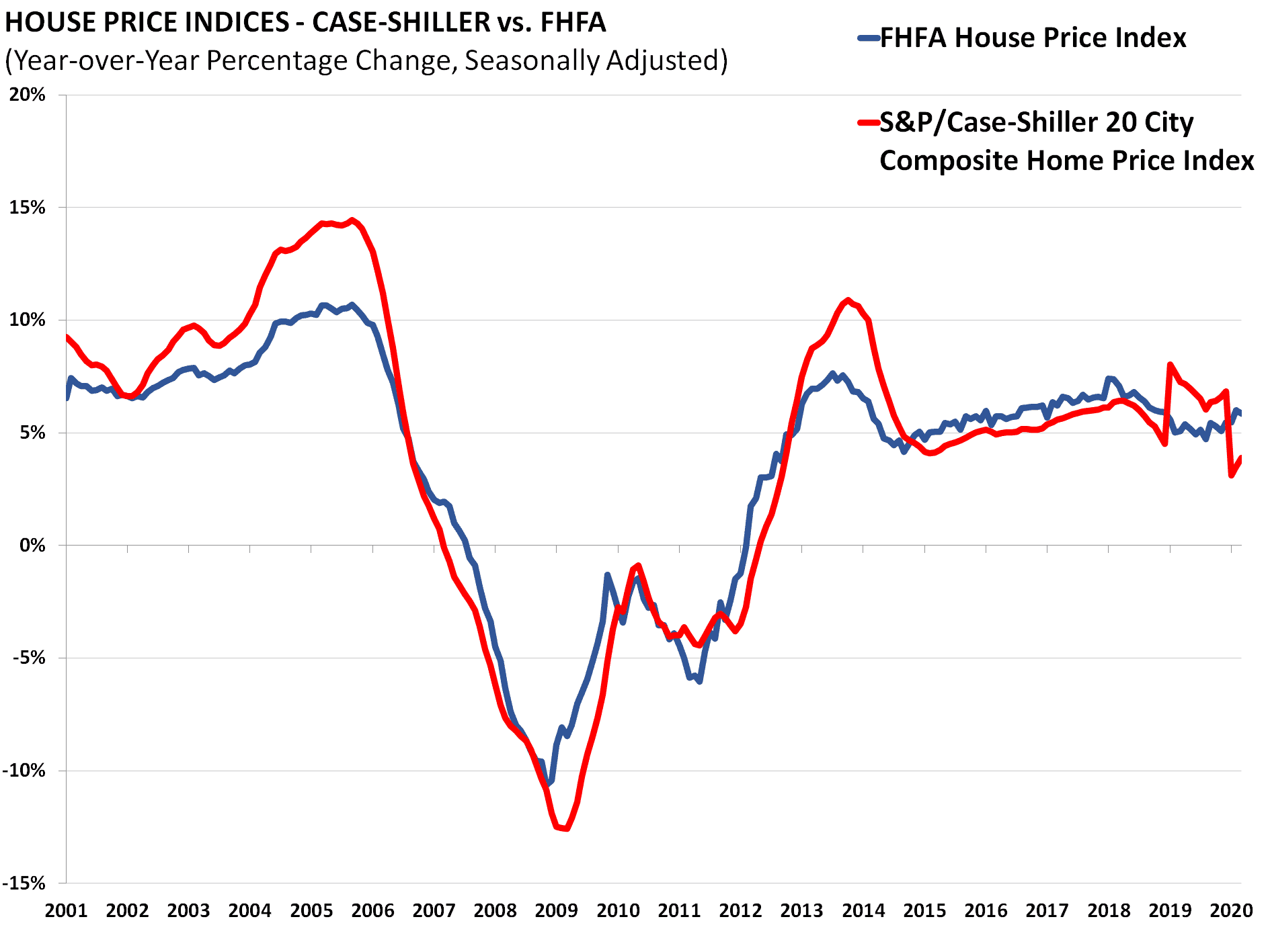 Similar to the Case-Shiller Index, the Federal Housing Finance Agency’s House Price Index (HPI) is a broad measure of single-family house prices. Information for the index is derived from properties whose mortgages have been purchased or securitized by Fannie Mae or Freddie Mac from all 50 states and the DC area.