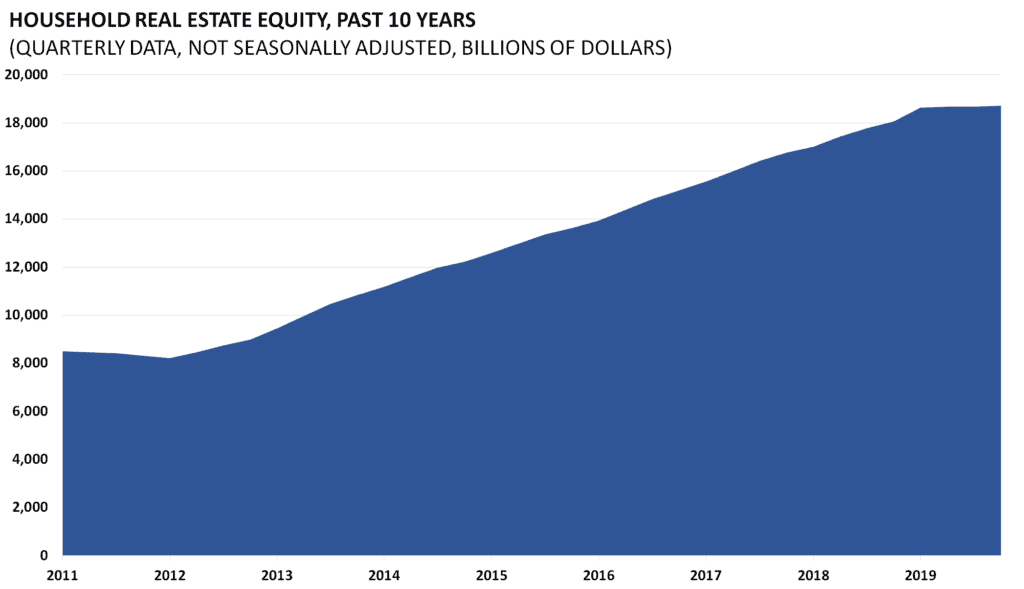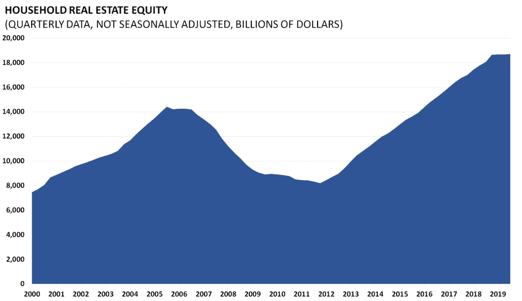 The amount of household real estate equity is the total net worth of household real estate holdings in the United States. As home prices plummeted with the bursting of the housing bubble, home equity plummeted. The loss in equity cannot be regained without economic growth and higher home prices. Household home equity data is released quarterly as part of the Z.1 Flow of Funds Accounts of the United States by the Board of Governors of the Federal Reserve System.