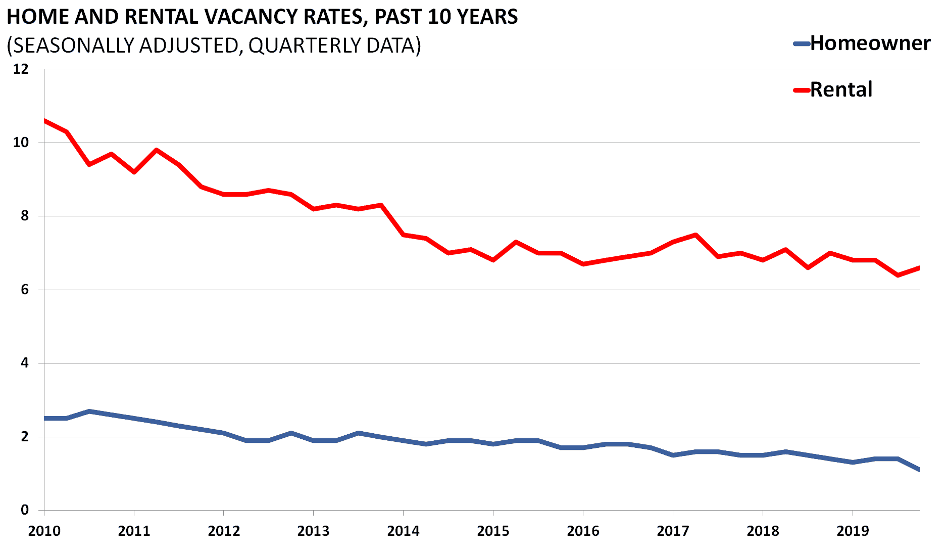 Both the Home and Rental Vacancies are important economic indicators. They gauge the economic climate by estimating the percentage of vacant units among all housing inventory.