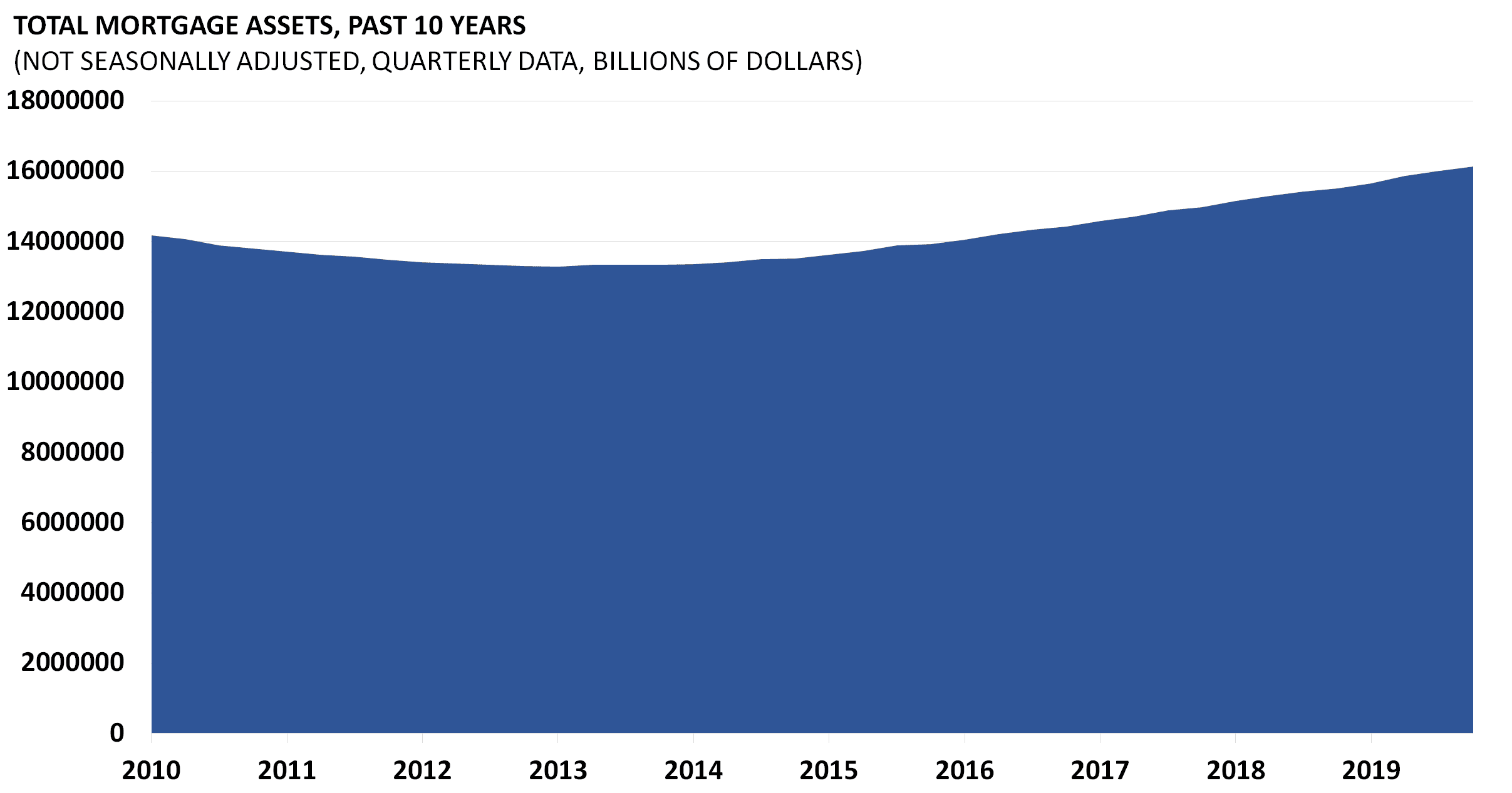Data on total mortgage assets is released quarterly as part of a larger report on the flow of funds accounts of the United States released by the Board of Governors of the Federal Reserve. Mortgage debt, like other forms of debt, can have a very real impact on the consumer spending and the overall economy.