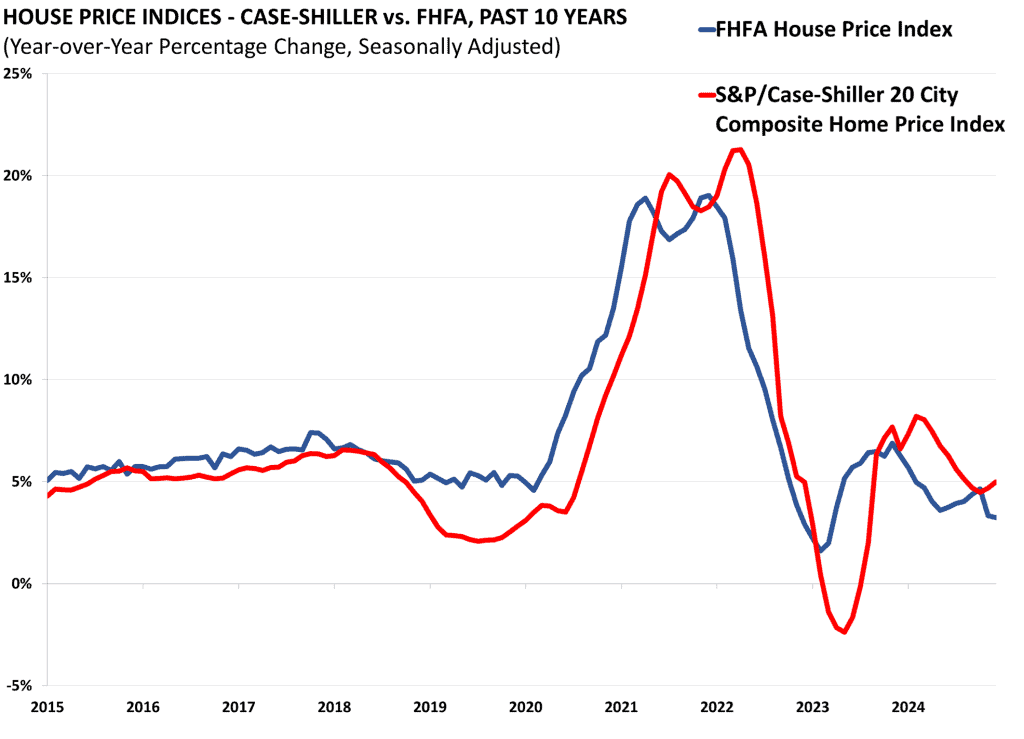 The S&P/Case-Shiller home price index is released near the end of each month for the month two months previously. The release is an index of home prices in 20 of the largest metropolitan areas across the country. It is a reputable and widely reported indicator of home prices.