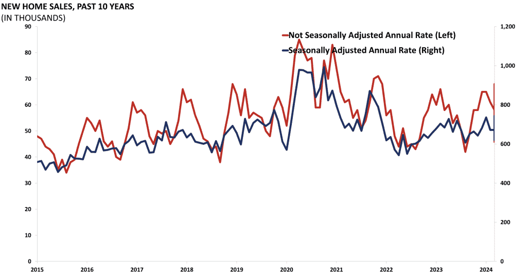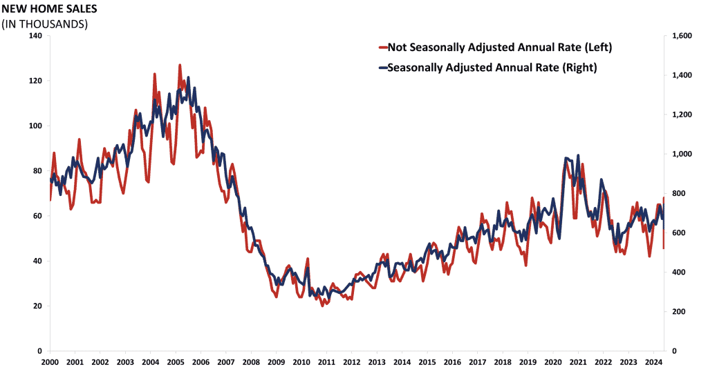 Data on new residential sales is released monthly by the Census Bureau, detailing the number of new single-family houses sold in a given month in the United States.