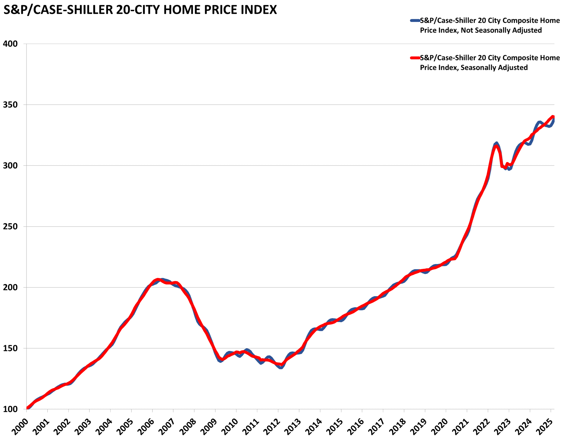 The S&P/Case-Shiller home price index is released near the end of each month for the month two months previously. The release is an index of home prices in 20 of the largest metropolitan areas across the country. It is a reputable and widely reported indicator of home prices.