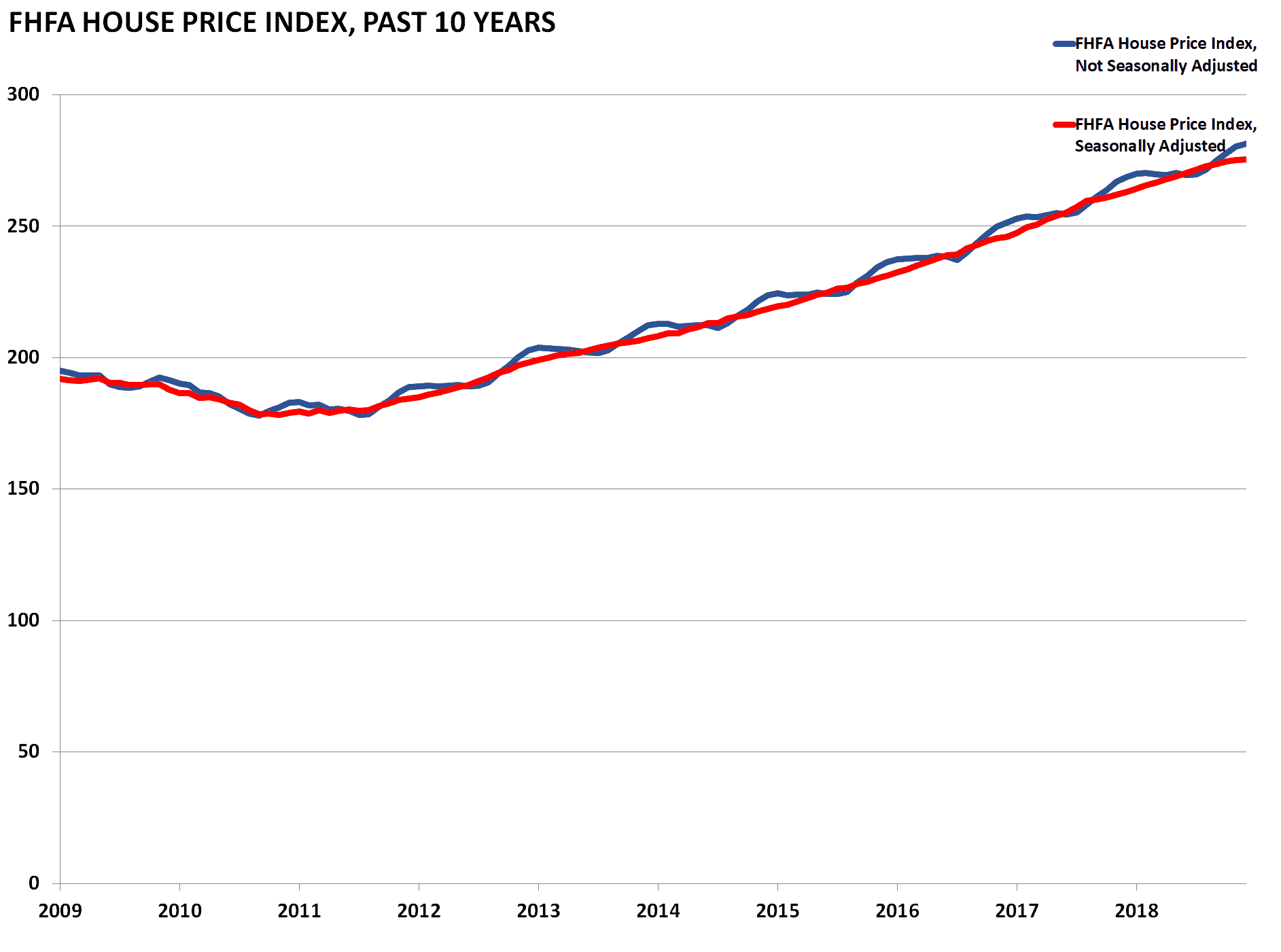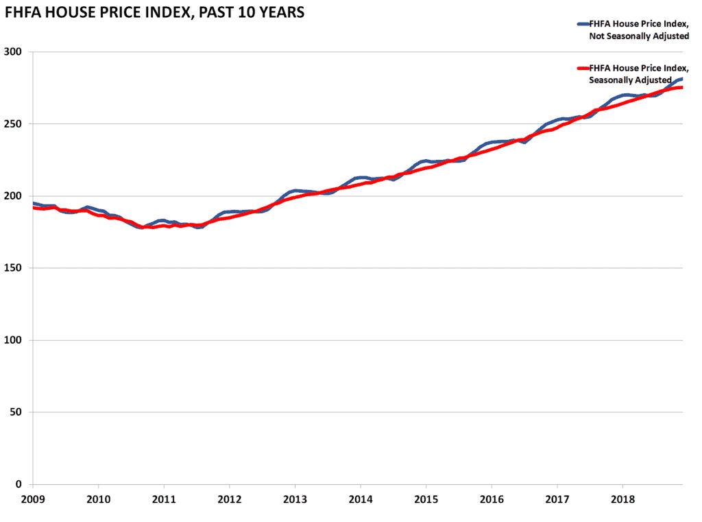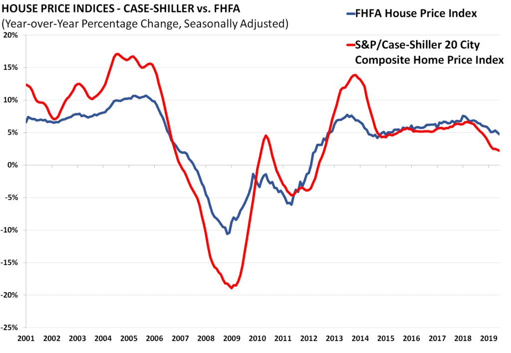 Similar to the Case-Shiller Index, the Federal Housing Finance Agency’s House Price Index (HPI) is a broad measure of single-family house prices. Information for the index is derived from properties whose mortgages have been purchased or securitized by Fannie Mae or Freddie Mac from all 50 states and the DC area.