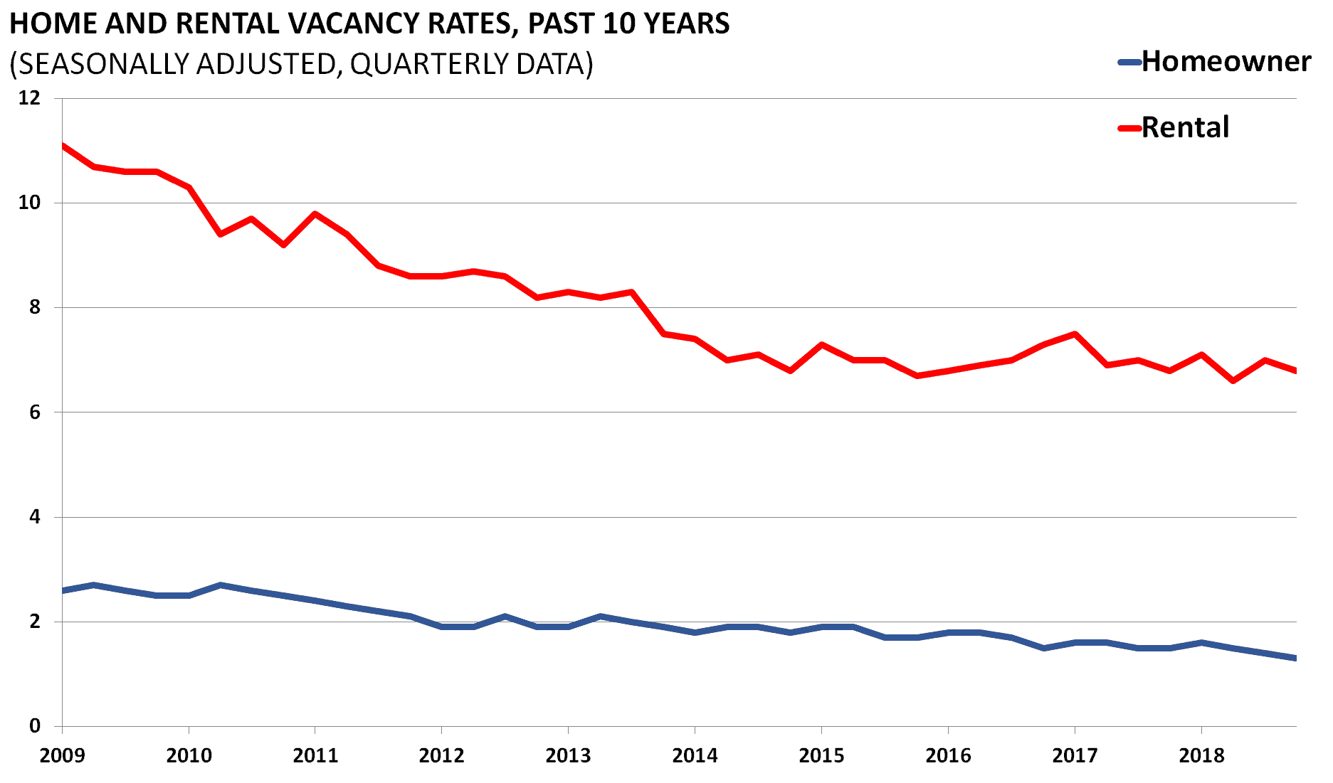 Both the Home and Rental Vacancies are important economic indicators. They gauge the economic climate by estimating the percentage of vacant units among all housing inventory.