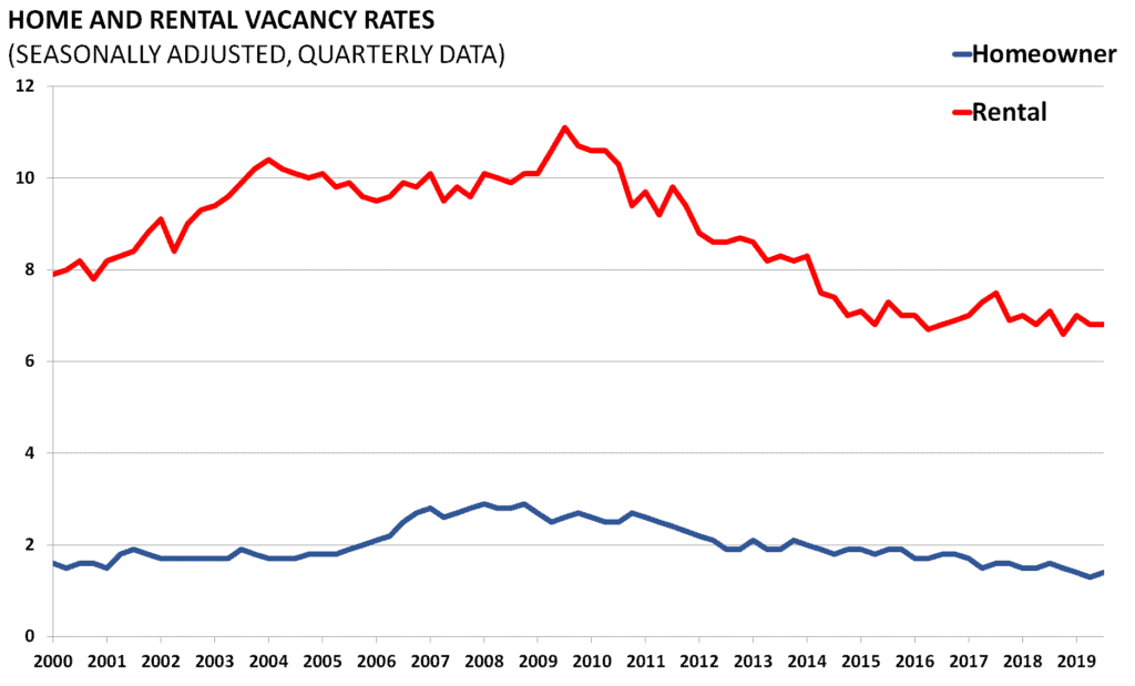 Both the Home and Rental Vacancies are important economic indicators. They gauge the economic climate by estimating the percentage of vacant units among all housing inventory.