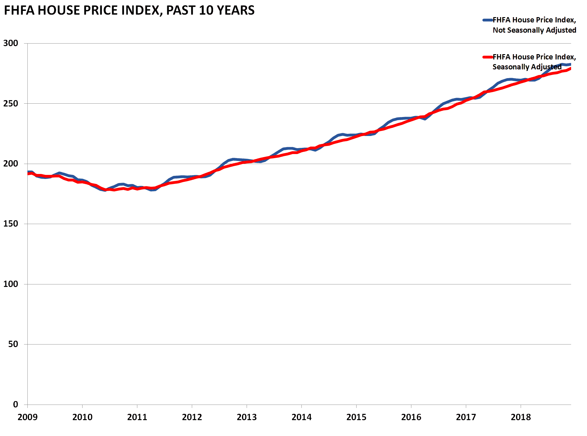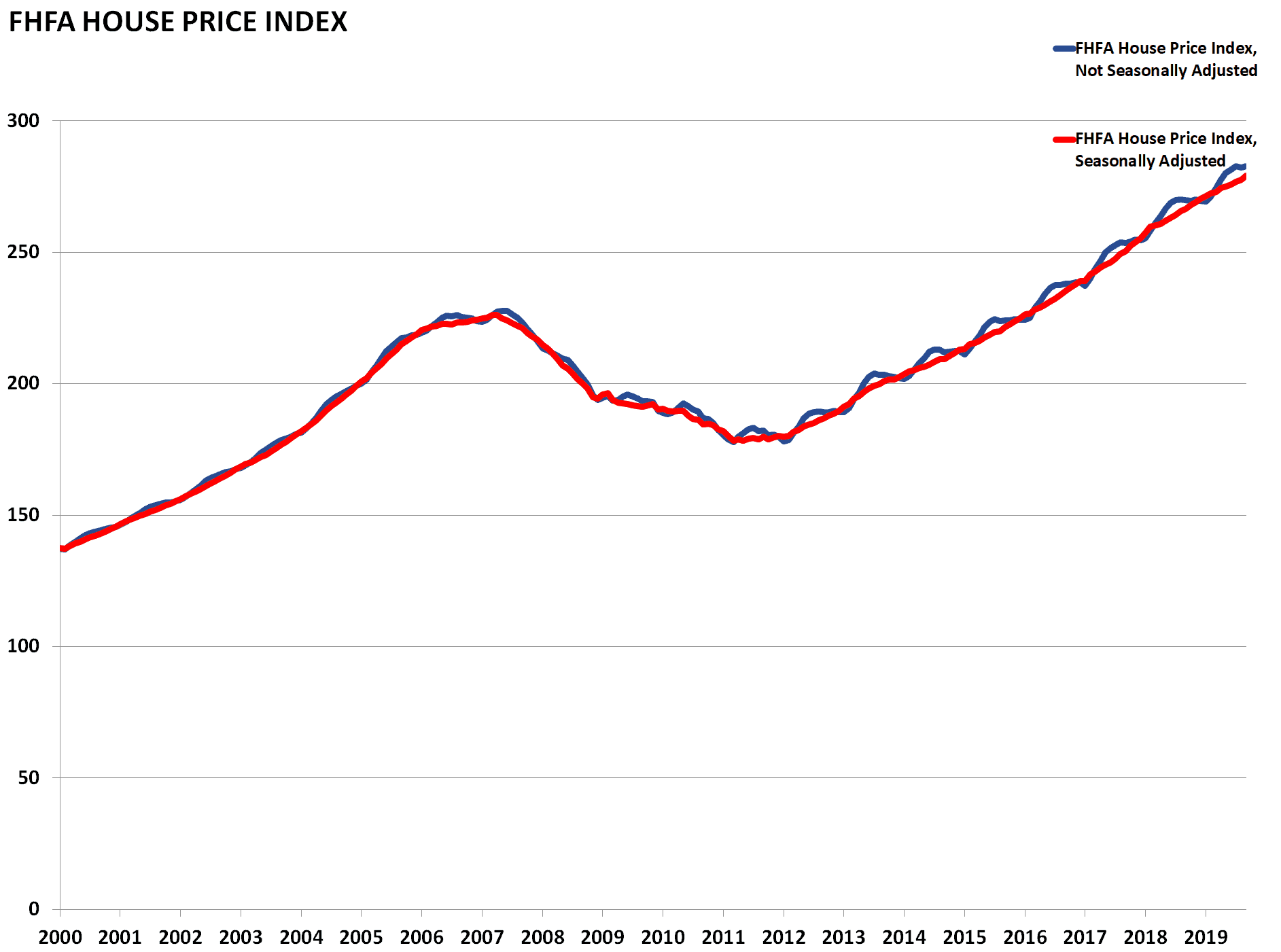 Similar to the Case-Shiller Index, the Federal Housing Finance Agency’s House Price Index (HPI) is a broad measure of single-family house prices. Information for the index is derived from properties whose mortgages have been purchased or securitized by Fannie Mae or Freddie Mac from all 50 states and the DC area.