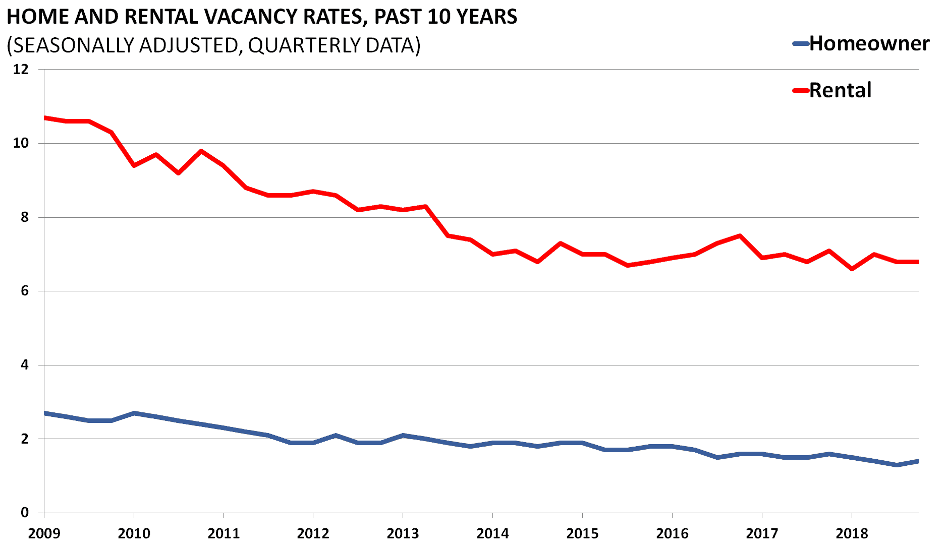 Both the Home and Rental Vacancies are important economic indicators. They gauge the economic climate by estimating the percentage of vacant units among all housing inventory.