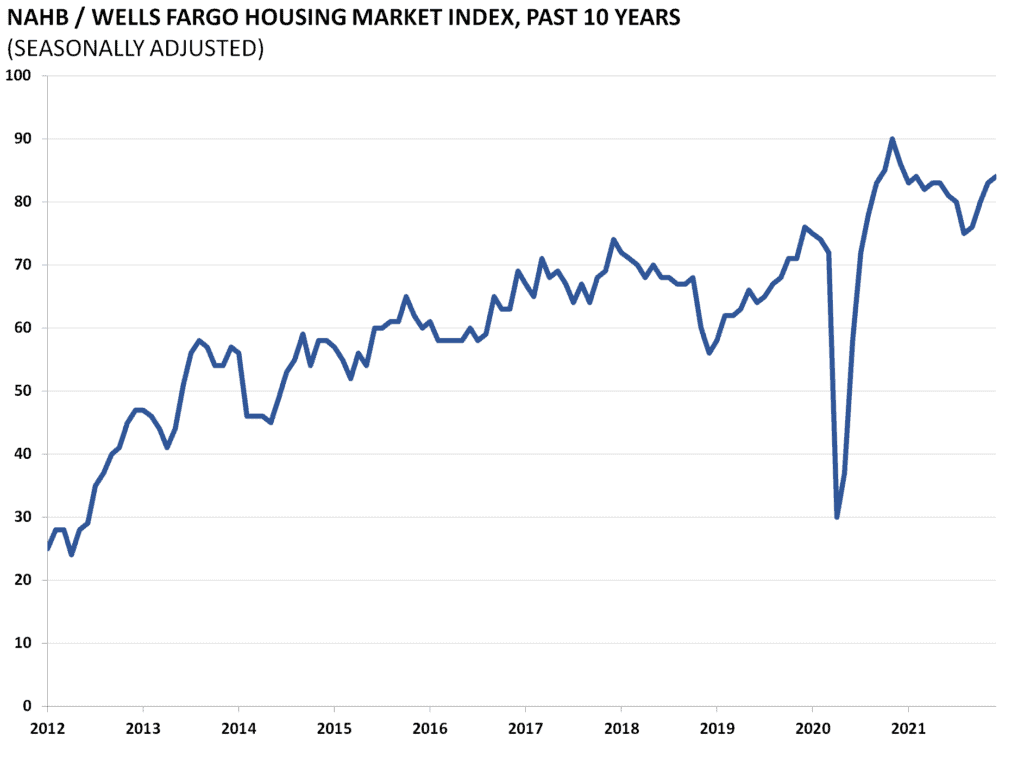 The National Association of Home Builders (NAHB) releases its Housing Market Index monthly to record builder sentiment on the demand side of the single-family housing market. The index is frequently used in assessments of housing market conditions. It is derived from a survey of builders who rate the market based on sales and expectations.