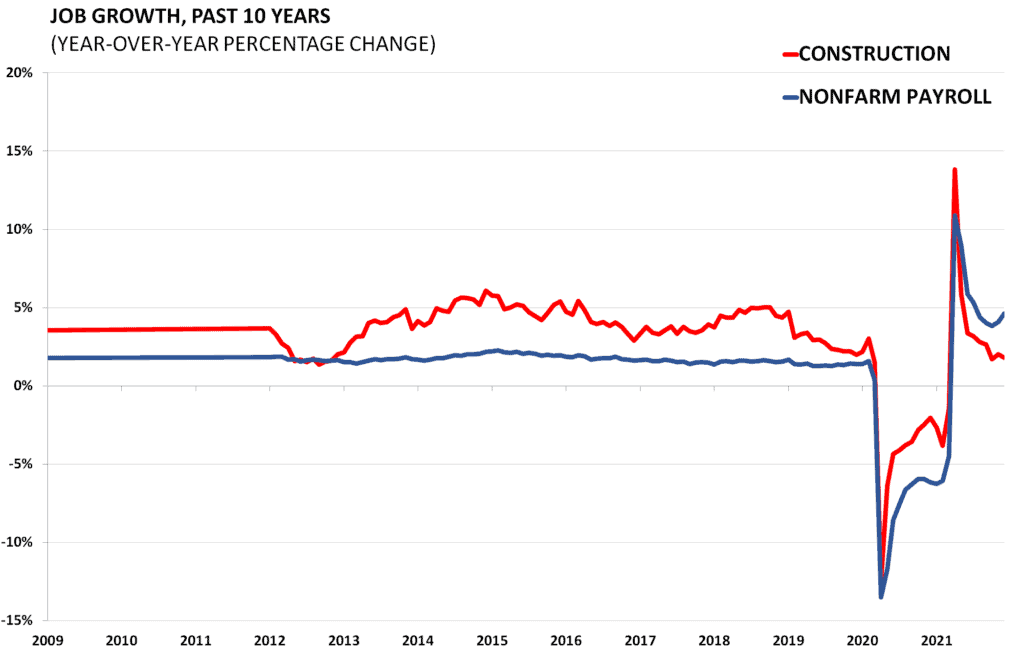 Non-farm payroll and construction employment data come from the Bureau of Labor Statistics which surveys 145,000 businesses and government agencies monthly in order to provide detailed industry data on employment, hours, and earnings. During the Great Recession, the economy shed 7.3 million jobs. The state of labor markets deeply affects the performance of the housing sector. A return in construction jobs will also herald a recovery in the housing market.