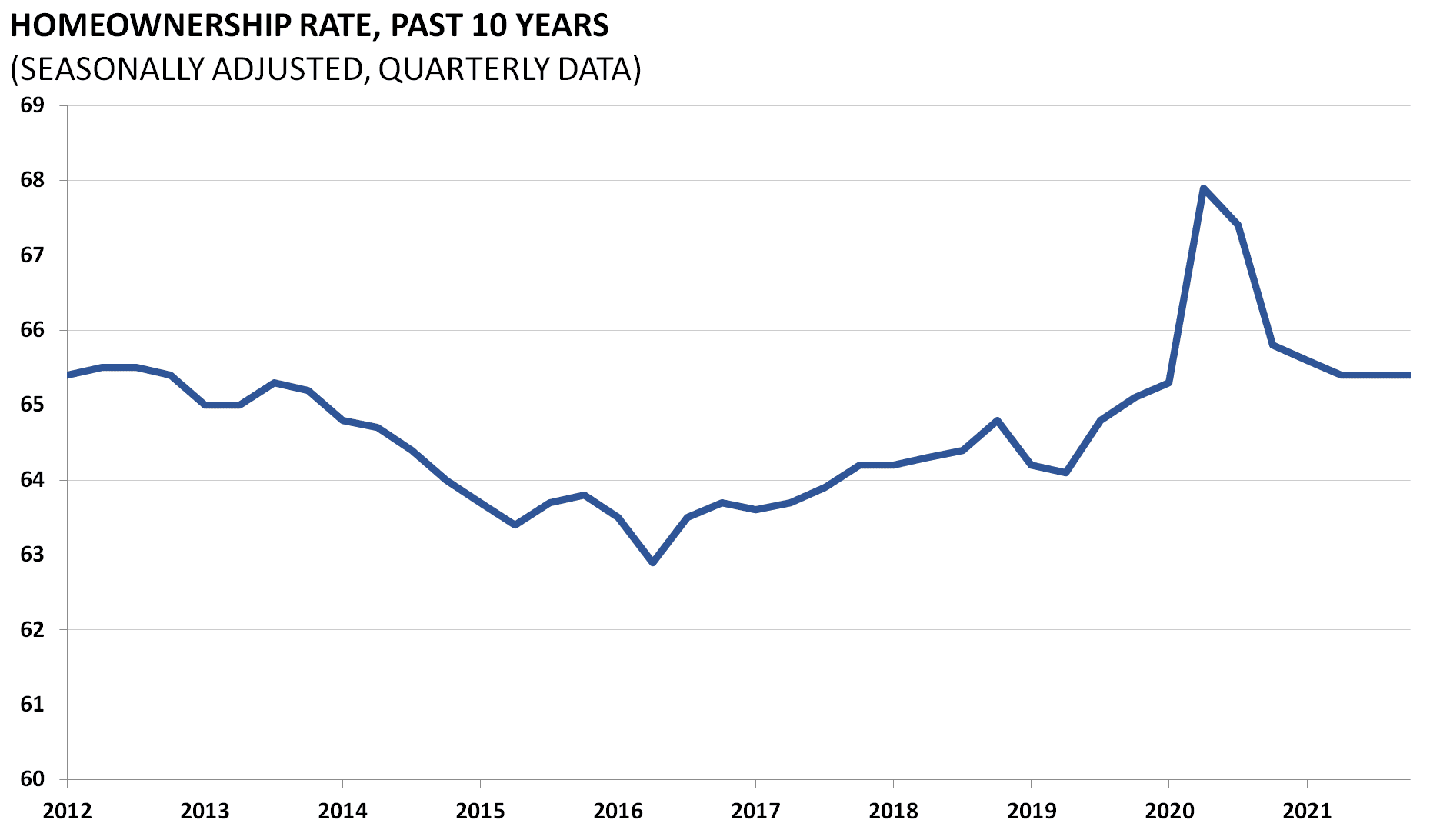 Federal policy has long played a role in homeownership. The homeownership rate, released by the Census Bureau quarterly, is an important indicator for the larger economy because of the outlying effects of homeownership. With the rising trend towards rental housing, the homeownership rate has been watched even more closely. It is calculated by dividing all owner-occupied units by the total number of occupied housing units in the United States.