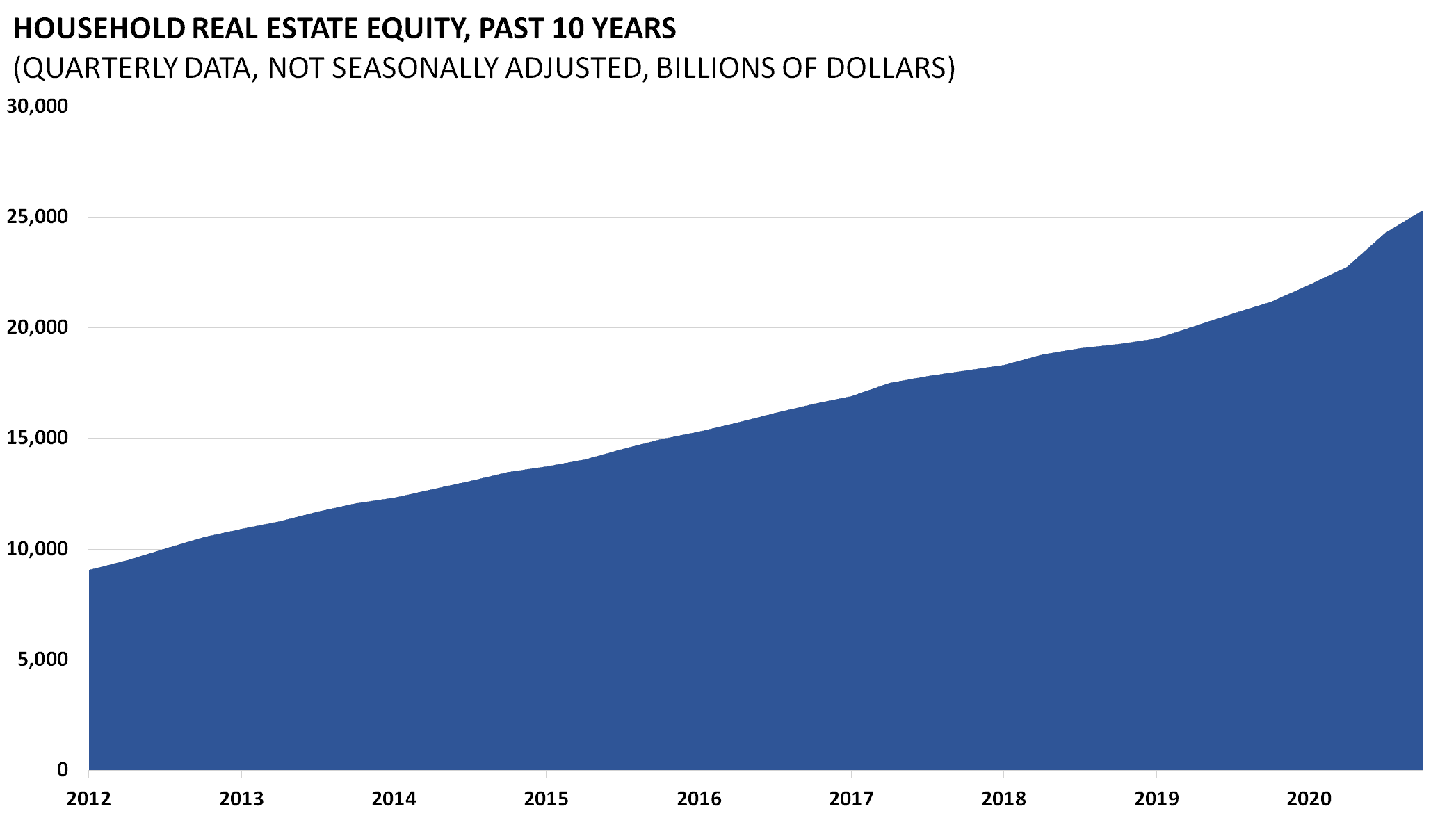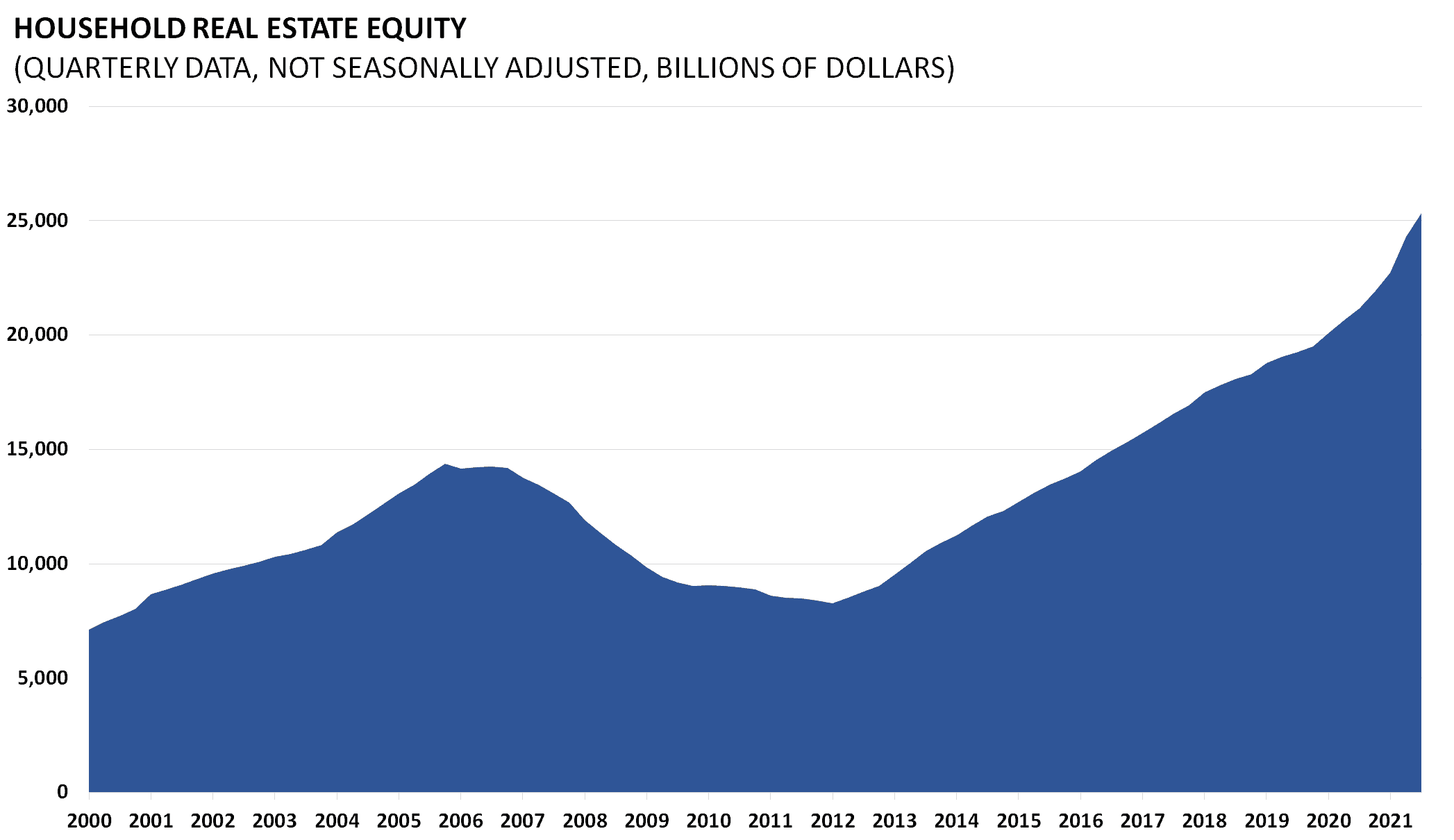 The amount of household real estate equity is the total net worth of household real estate holdings in the United States. As home prices plummeted with the bursting of the housing bubble, home equity plummeted. The loss in equity cannot be regained without economic growth and higher home prices. Household home equity data is released quarterly as part of the Z.1 Flow of Funds Accounts of the United States by the Board of Governors of the Federal Reserve System.
