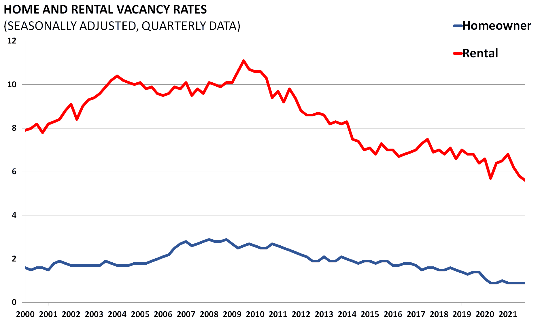 Both the Home and Rental Vacancies are important economic indicators. They gauge the economic climate by estimating the percentage of vacant units among all housing inventory.