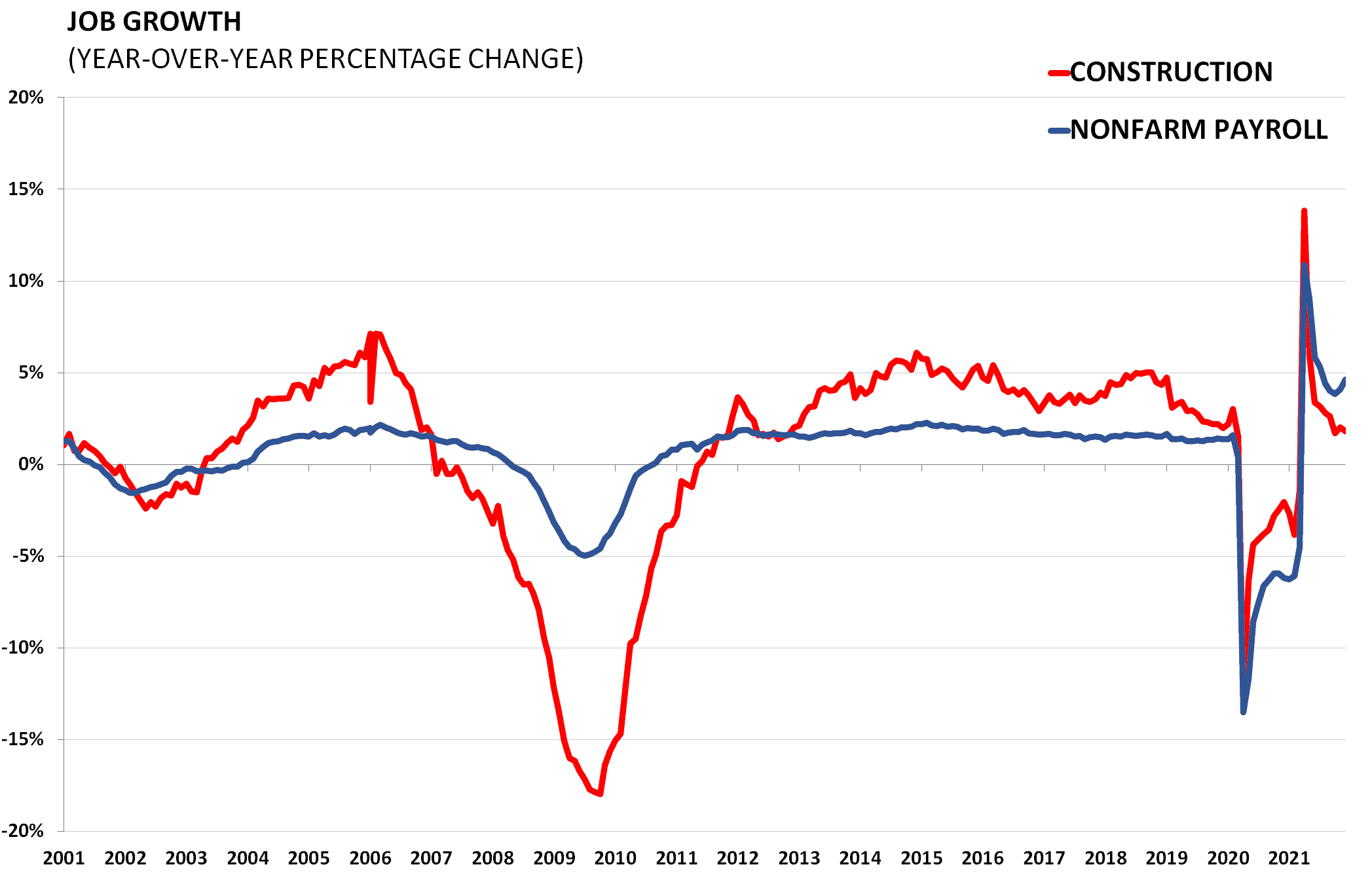 Non-farm payroll and construction employment data come from the Bureau of Labor Statistics which surveys 145,000 businesses and government agencies monthly in order to provide detailed industry data on employment, hours, and earnings. During the Great Recession, the economy shed 7.3 million jobs. The state of labor markets deeply affects the performance of the housing sector. A return in construction jobs will also herald a recovery in the housing market.