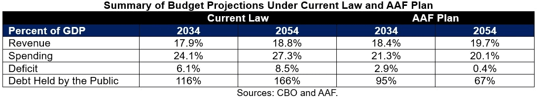 The debt issue is often framed in terms of crisis and sovereign debt meltdowns. While having a crisis is a clear failure, not having a crisis is not success. The AAF plan produces a better fiscal policy that will result in higher standards of living and greater security in the future.