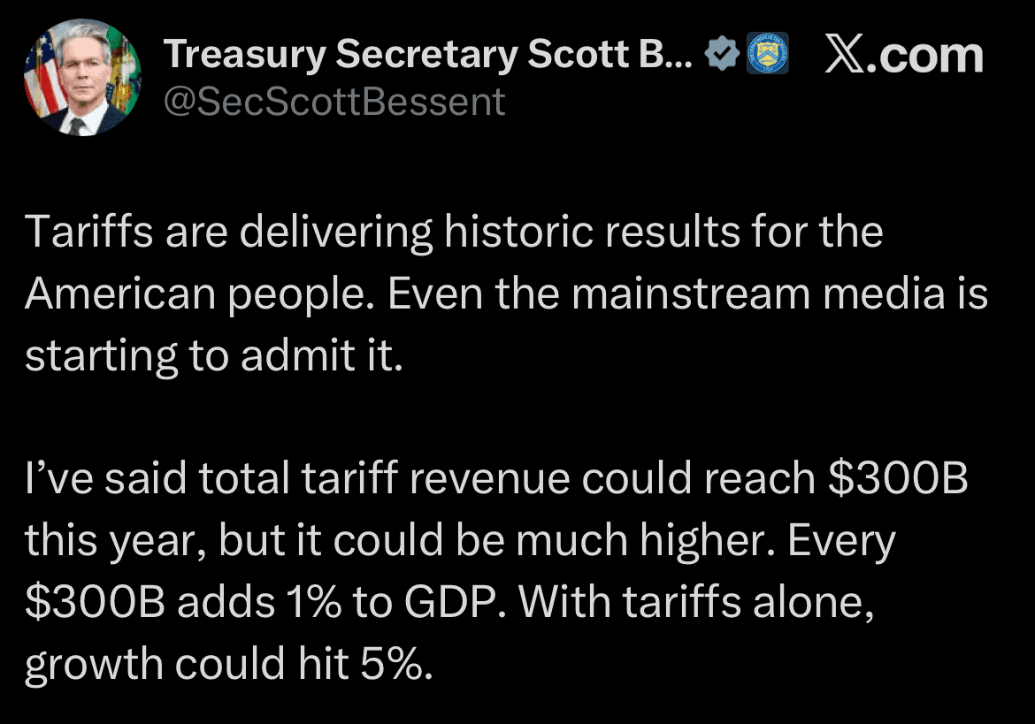 As is Trump Administration best practice, Treasury Secretary Scott Bessent eschewed press releases, press briefings, or other mainstream media outlets and instead took to X to inform the American people:
