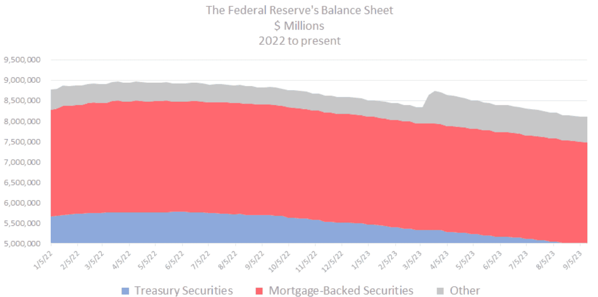 Today marks the start of a two-day Federal Open Market Committee (FOMC) meeting, at which the FOMC is widely expected to leave the target federal funds rate (the policy interest rate) unchanged. So, let us instead talk about the part of the Fed strategy that nobody is talking about: the shrinking Fed balance sheet, a.k.a. quantitative tightening (QT).