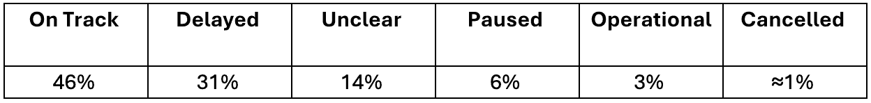 Figure 1: Status of Tracked Investments over $100 Million (Source: Financial Times)