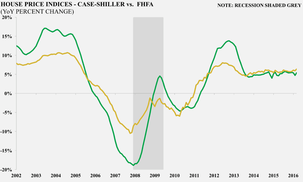 The S&P/Case-Shiller home price index is released near the end of each month for the month two months previously. The release is an index of home prices in 20 of the largest metropolitan areas across the country. It is a reputable and widely reported indicator of home prices.