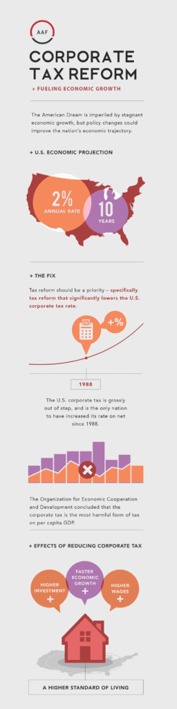 Today, the American Action Forum (@AAF) released an infographic on corporate tax reform. The infographic details the U.S. economic growth projection without tax reform and shows the impacts that reducing the corporate tax rate would have on U.S. families.