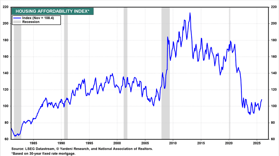 Source: Yardeni Research; lower index value indicates less affordability