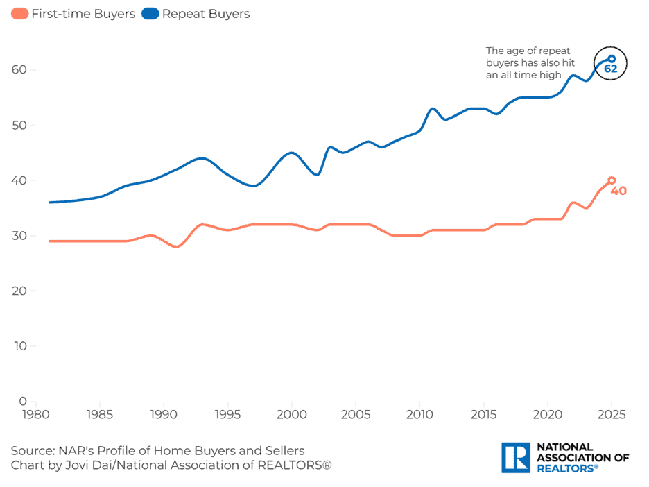 NAR also reported that the median down payment reached 10 percent in 2025, matching the level last reached in 1989 and up from 7 percent in 2020. A down payment of 10 percent on the median price of an existing single-family home would translate to about $43,000 in Q3 2025, or just over $36,000 for a starter home.