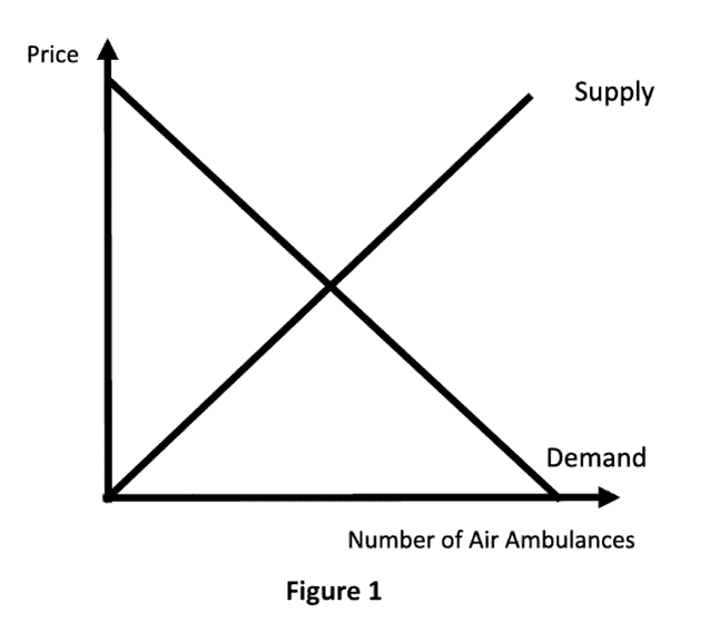 In an industry with normal market forces, prices and quantities of the goods supplied are dictated by the equilibrium between demand and supply. Therefore, the quantity demanded curve is negatively sloped as people buy less as the price increases (Figure 1). But in the air ambulance industry, the demand curve takes the shape of a vertical line (Figure 2). The quantity demanded stays the same, unaffected by price of the ambulance service