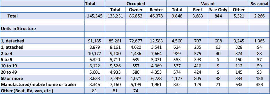 Figure 2: Housing Stock by Type, Thousands of Units