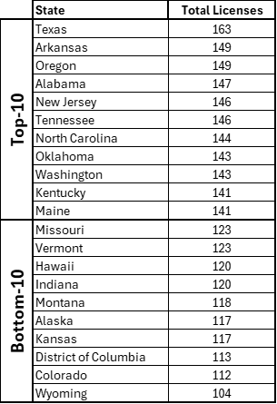 *Created using data from The Archbridge Institute’s State Occupational Licensing Index 2024 Master Data