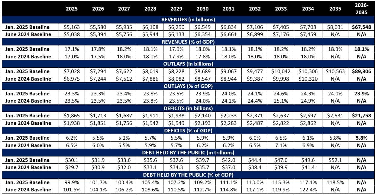 Highlights of CBO’s January 2025 Budget and Economic Outlook