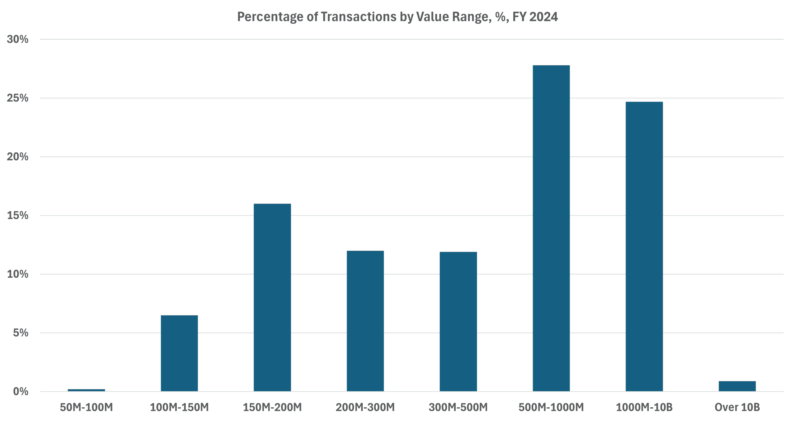 - While the data for FY 2024 – which include data between October 1, 2023, and September 30, 2024 – cover the final year of the Biden Administration, the increasing share of transactions among large firms will likely remain a focal point during the Trump Administration.