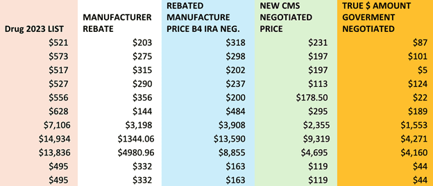 These aren’t the high-priced poster children of drug negotiation. These are simply widely prescribed modern therapies. They also compete head-to-head for market share among seniors, not just by price but also by paying rebates for preferred placement on drug plans’ formularies, i.e., a tier having little or no cost-sharing for the beneficiaries.