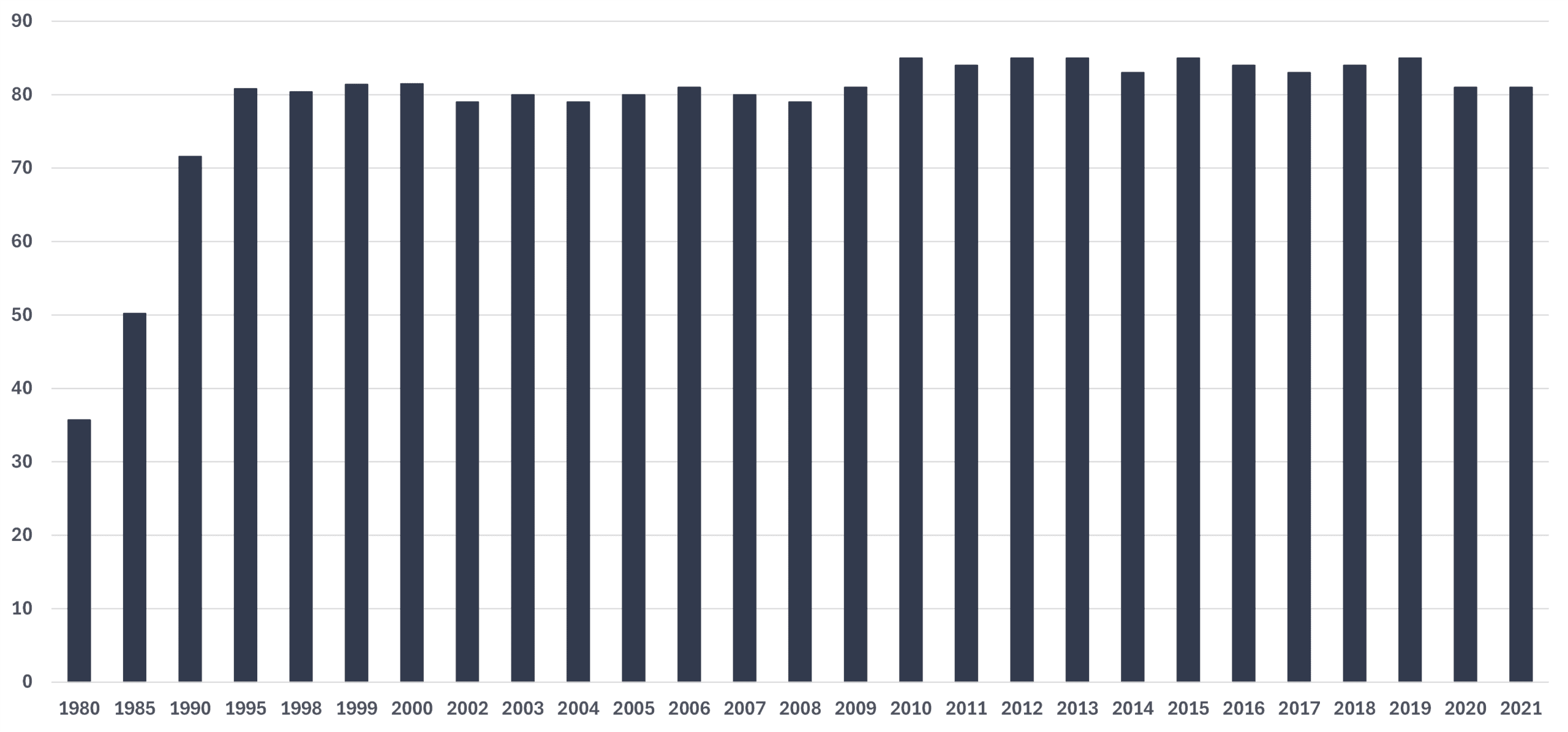 Figure 5: Annual Meat Packing Four-firm Concentration Ratio, Steers and Heifers, %