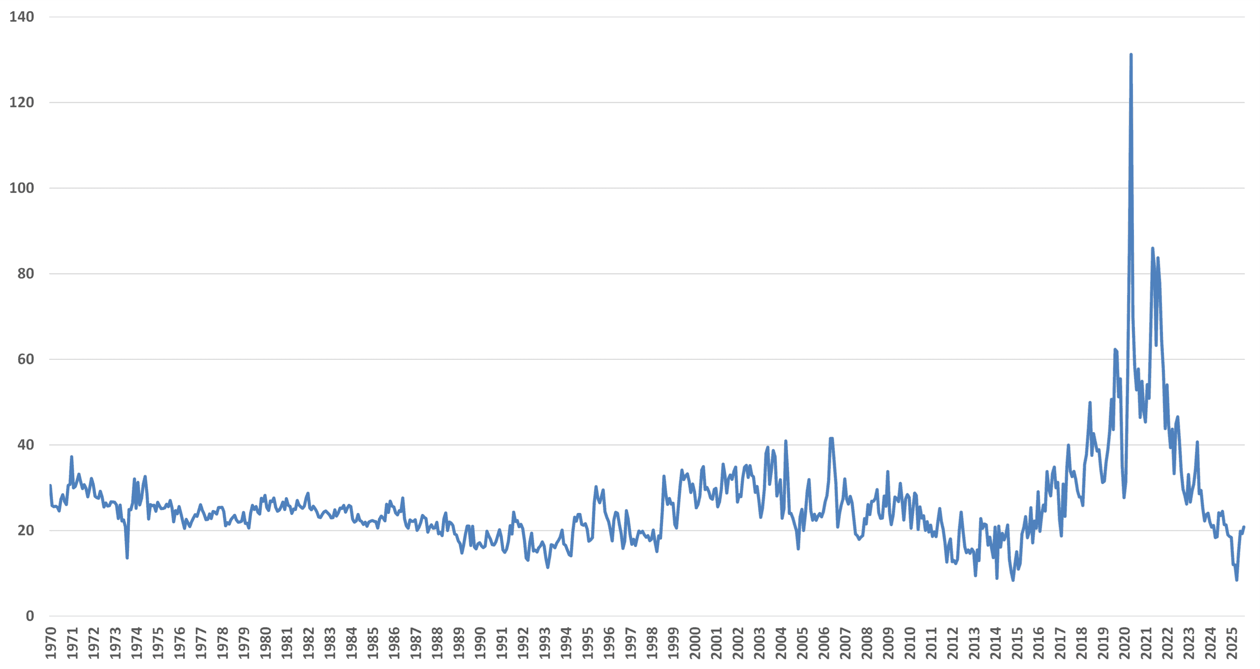 President Trump claims that the high level of market concentration enables firms to coordinate to fix or manipulate prices. If this were true, we would expect to see a growing gap between the prices meat packers pay to farmers and what they receive at the wholesale market. Yet the inflation-adjusted farm-to-wholesale choice beef price spread from the USDA – which is the difference between the average monthly price paid by meat packers for choice-graded cattle and the wholesale value received by the meat packers – has narrowed in recent years. This suggests that the meat packers have been unable to flex market power or collude to fix prices to increase margins. After reaching a COVID-19 pandemic-related high of $131 per hundredweight (as a result of several plant closures and reduced capacity) – which is a unit of measure equal to 100 pounds of beef – that spread fell to just over $20 in August 2025.