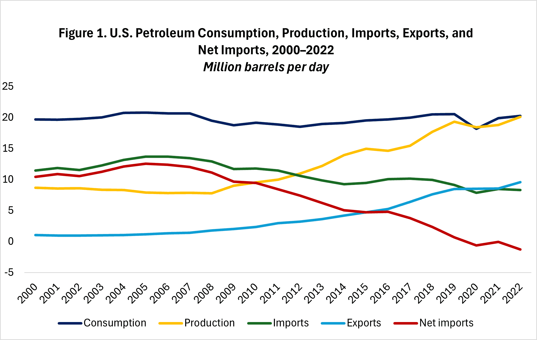 Notably, the United States is already the world’s largest oil and gas producer. In 2023, it produced 22 million barrels of oil per day, accounting for 22 percent of the world’s total. The United States also recently became a net exporter of oil and natural gas.