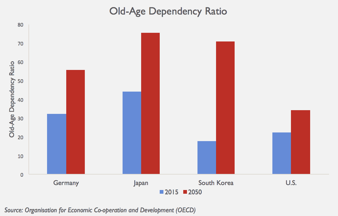 - The aging crises that U.S. allies in Europe and Asia face will only aggravate the problem and make trade-offs even more severe.