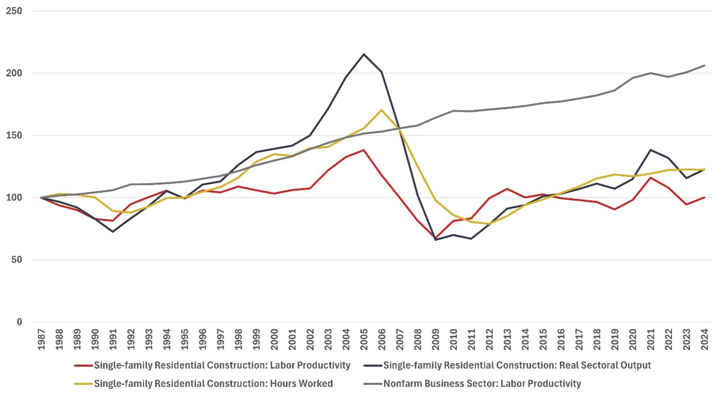 *Source: U.S. Census Bureau, Economic Census; author’s calculations; more recent data showed that single-family completions have fallen further to 1.016 million in 2024.