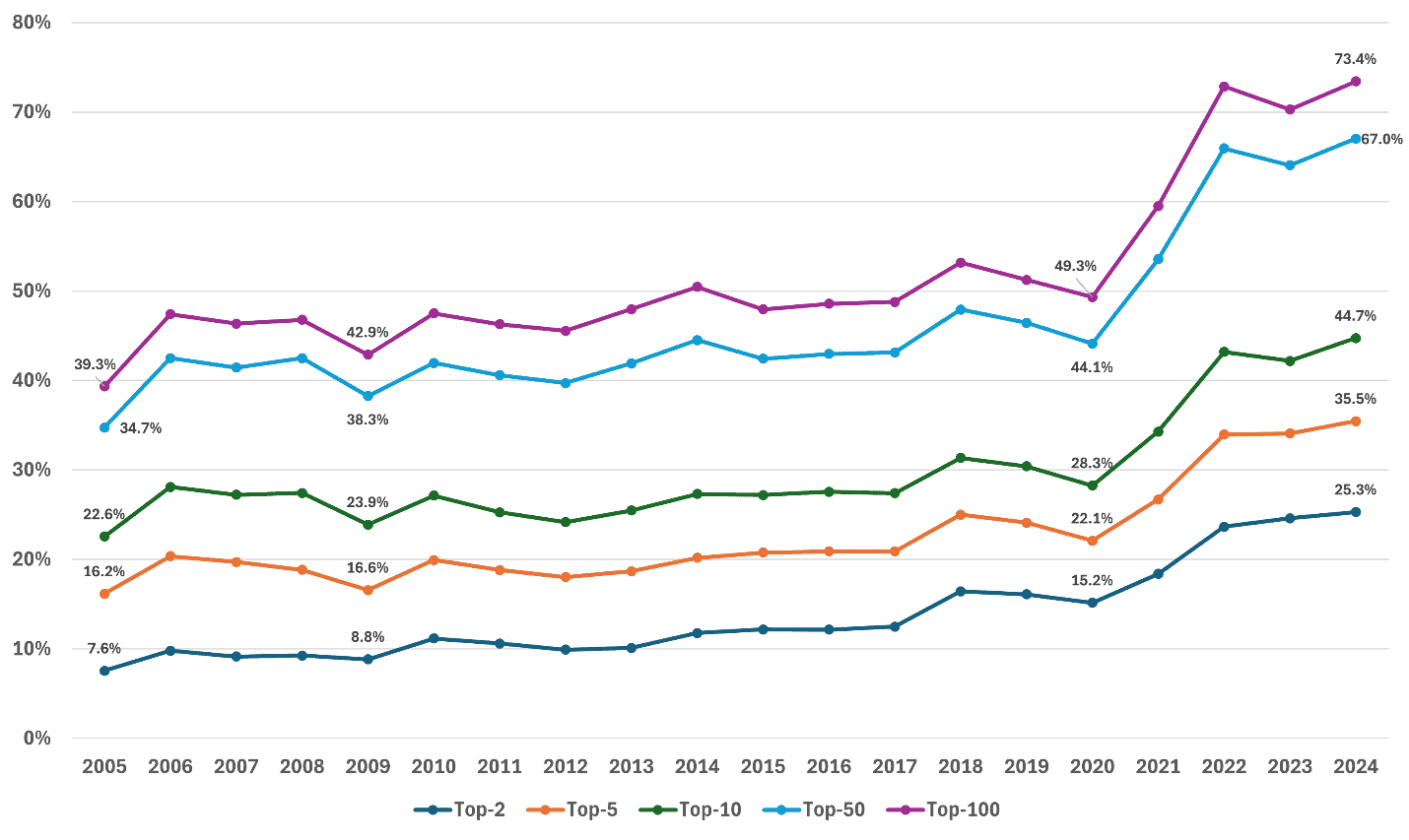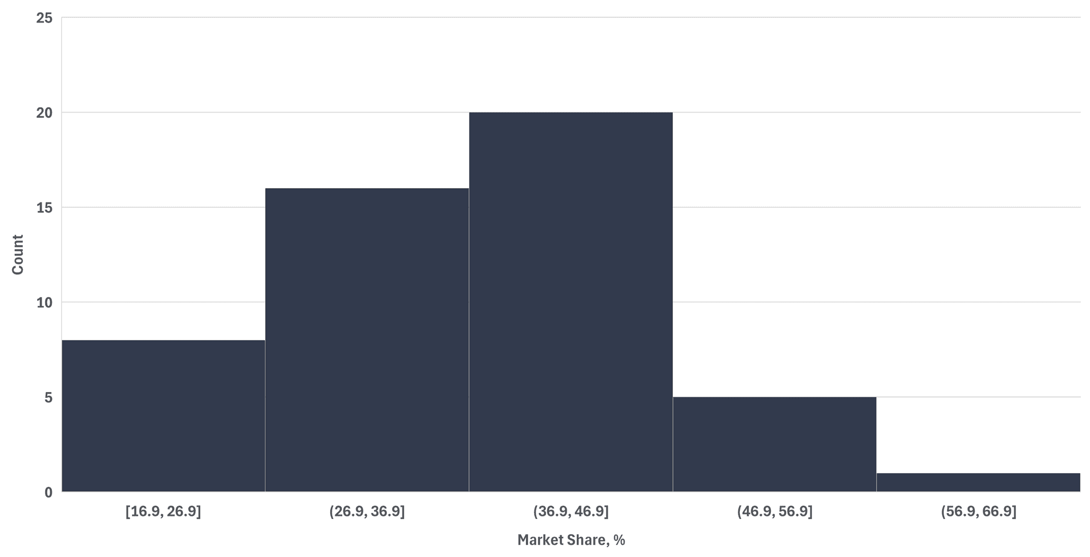 Figure 7. Distribution of Market Share of Top 2 Firms in Top 50 MSAs in 2024