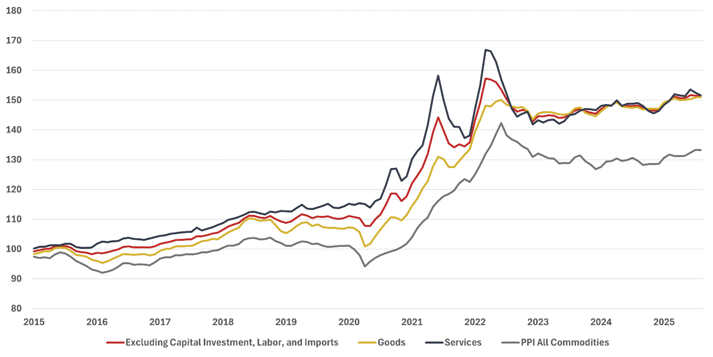 Producer price index (PPI) measuring inputs to single-family residential construction, excluding capital investment, labor, and imports soared 52.5 percent from January 2015 to August 2025 while overall PPI increased nearly 37 percent over the same period (Figure 9).