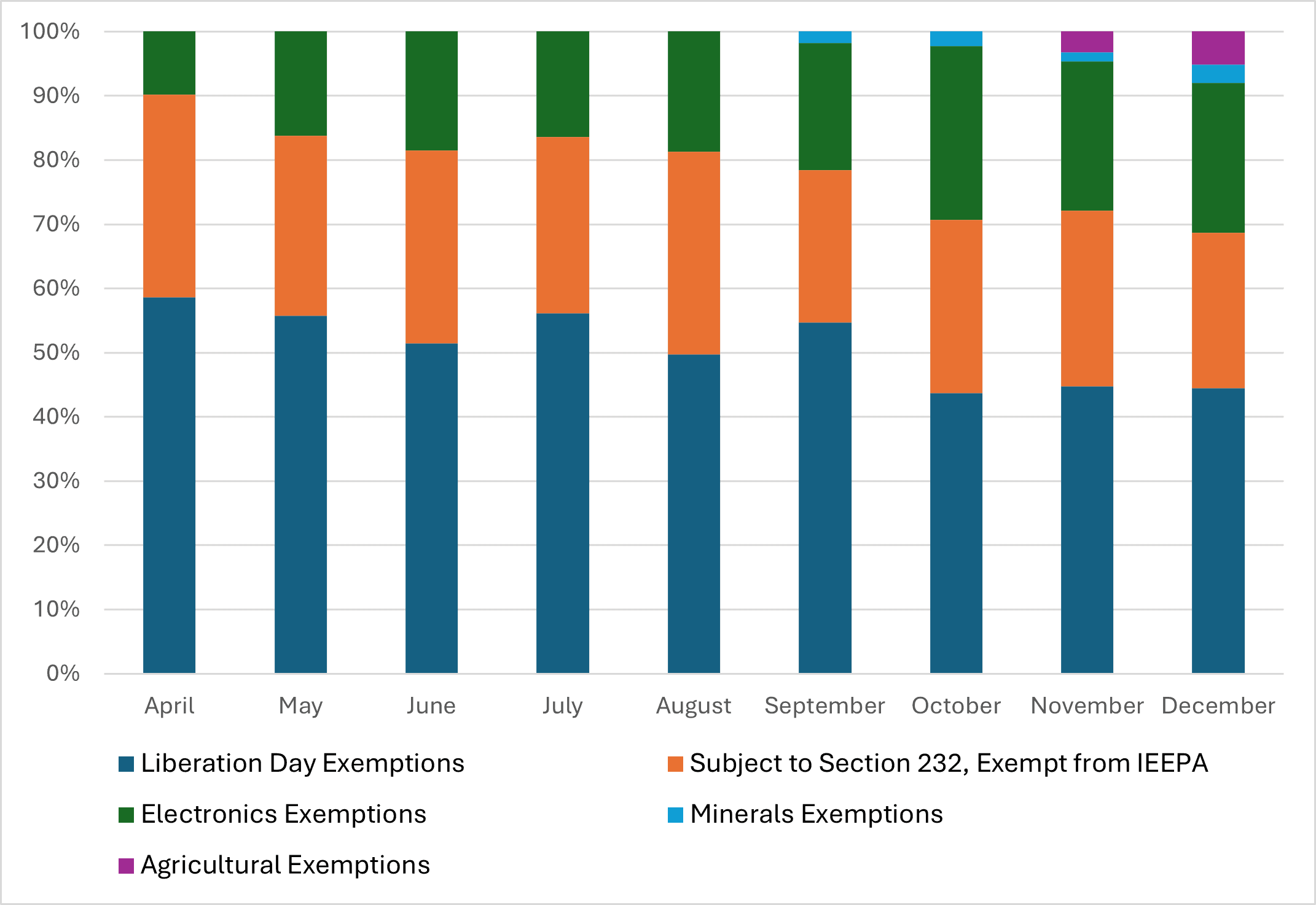 Figure 1: IEEPA Tariff Exemptions as a Percentage of U.S. Imports Since “Liberation Day”