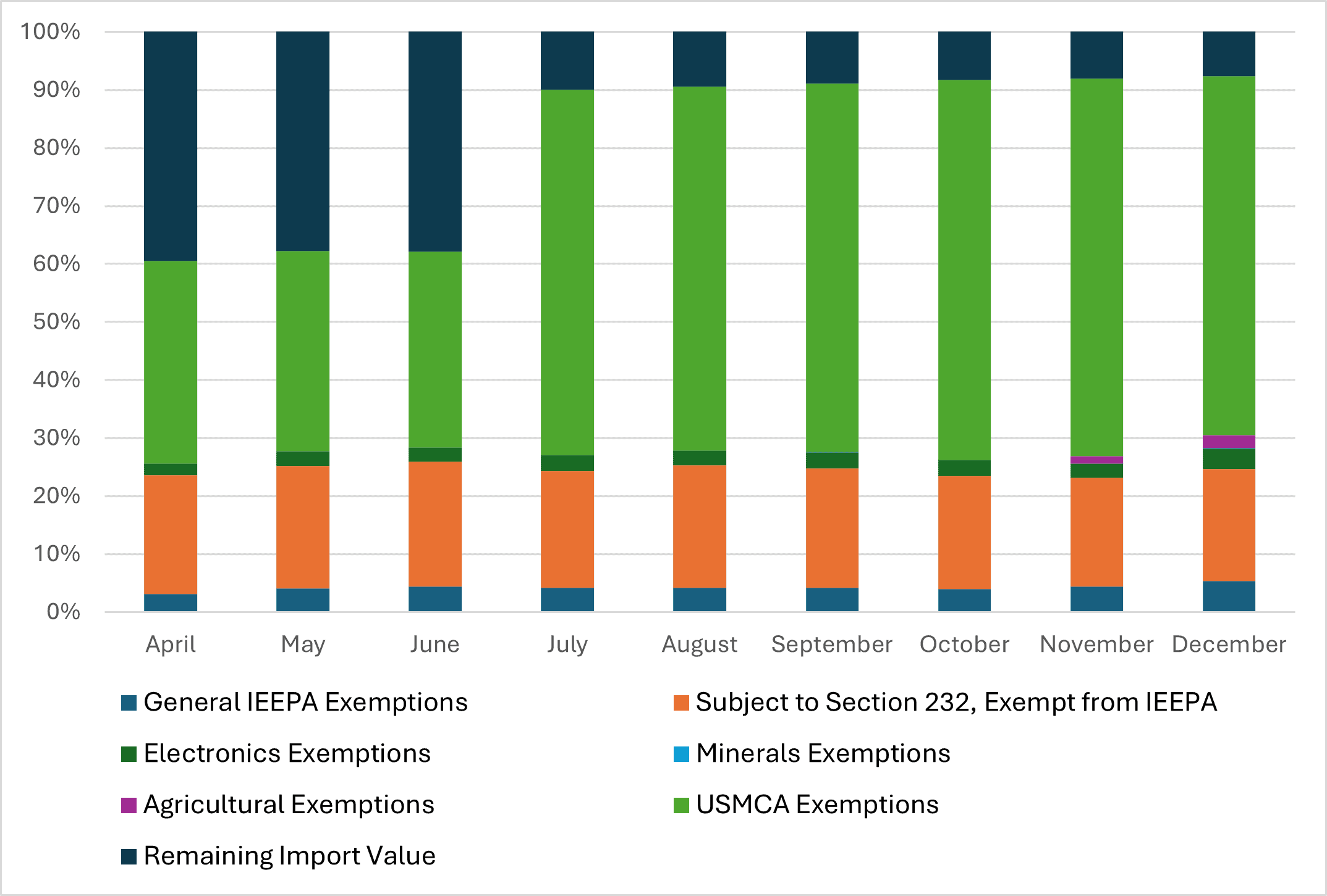 Figure 13: Mexico USMCA and IEEPA Exemptions as a Percent of Monthly Import Value