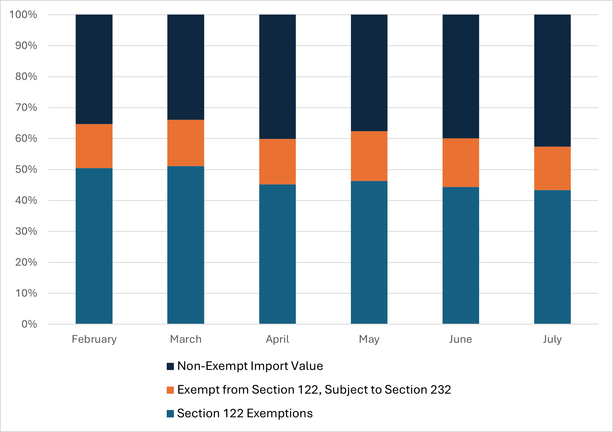 Figure 3: 150 Days of Section 122 Tariff Regime Exemptions as a Percentage of U.S. Imports