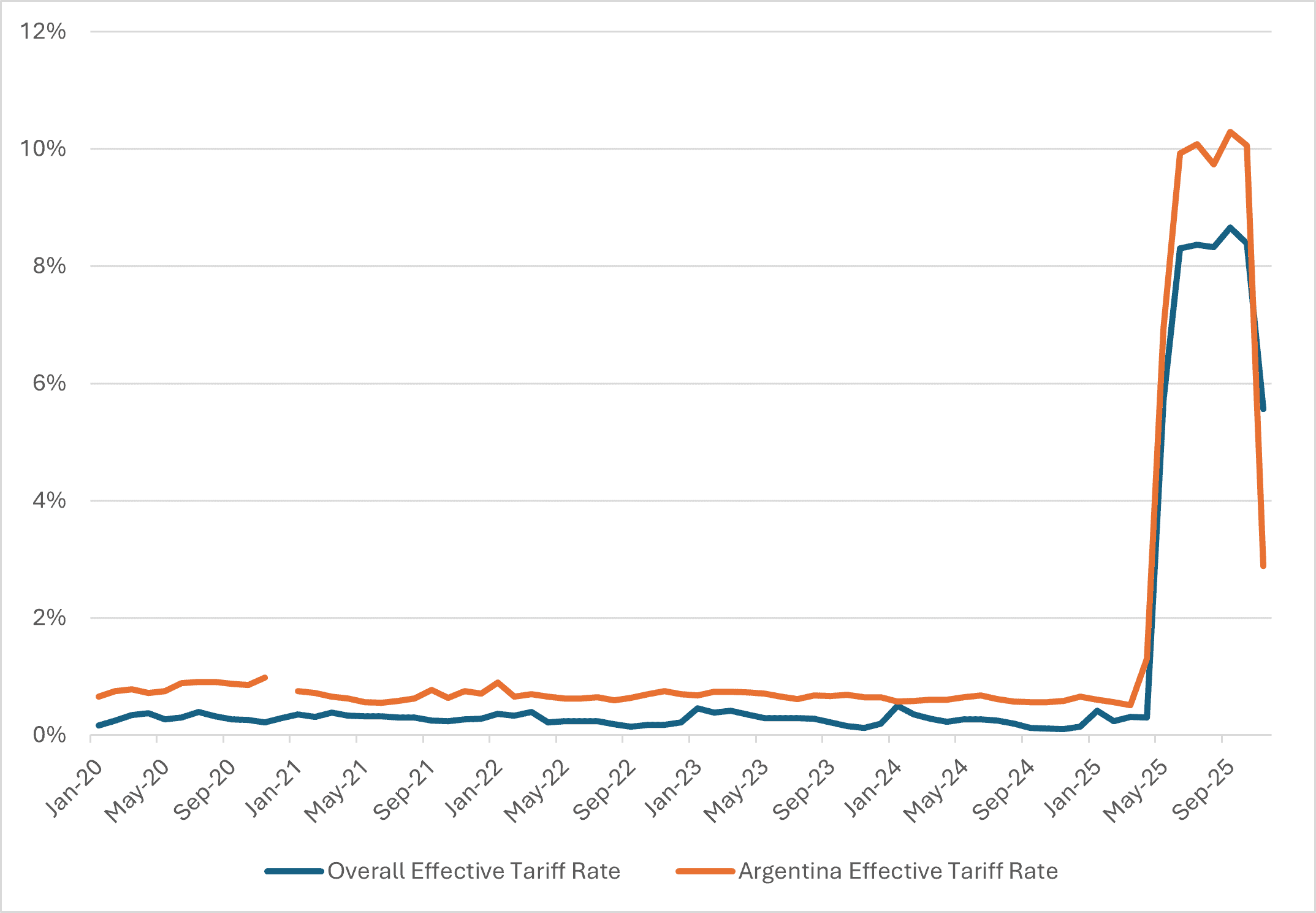Figure 2: Monthly Effective Tariff Rate on U.S. Beef Imports (2020 to 2025)
