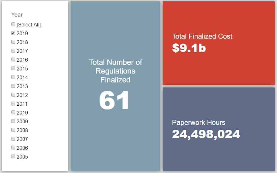 Since January 1, the federal government has published $14.2 billion in net costs (with $9.1 billion in finalized costs) and 24.9 million hours of net paperwork burden increases (including roughly 24.5 million hours from final rules). Click here for the latest Reg Rodeo findings.