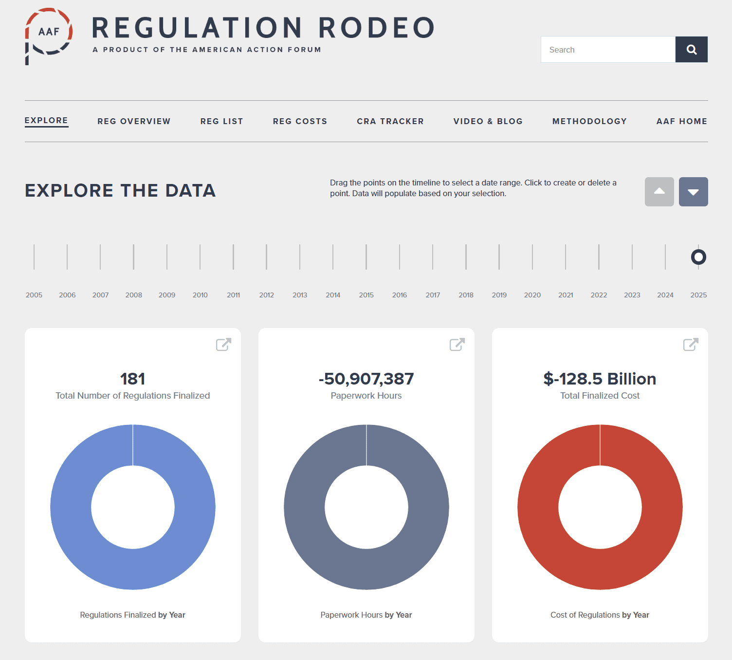 The American Action Forum (AAF) is proud to announce a revamped version of our Regulation Rodeo (or RegRodeo) project. For those unfamiliar with it, AAF’s RegRodeo database houses information on federal regulations going back to 2005. Launched in 2015, RegRodeo tracks every proposed and final rule published in the Federal Register that includes a quantified economic impact or paperwork burden estimate. This version makes the following improvements to the site:
