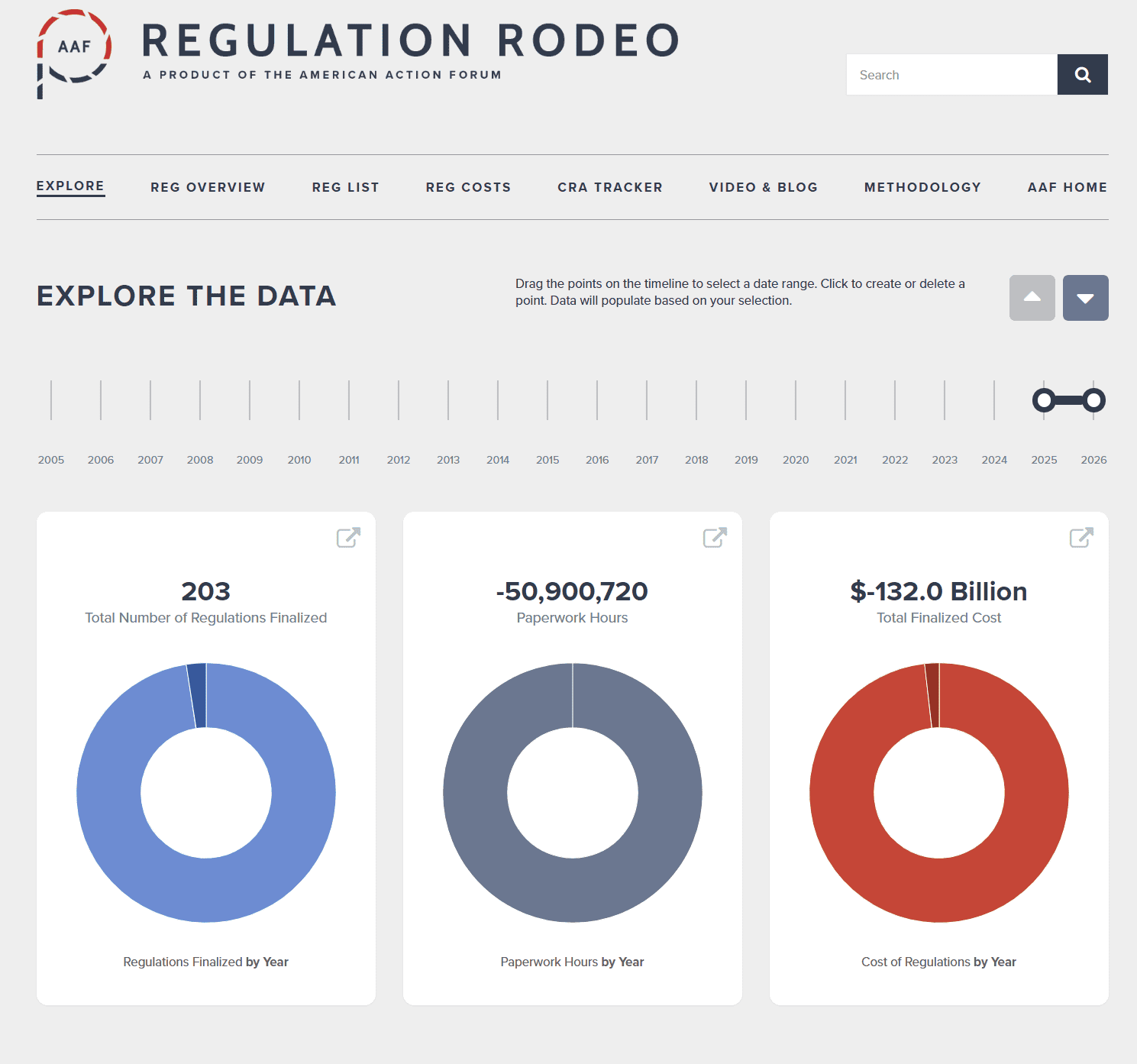 For 2025 and the one day so far of 2026, the federal government has published $980.9 billion in total regulatory net cost savings (with $132 billion in cost savings from finalized rules) and 70.8 million hours of net annual paperwork cuts (with 50.9 million hours coming from final rules).