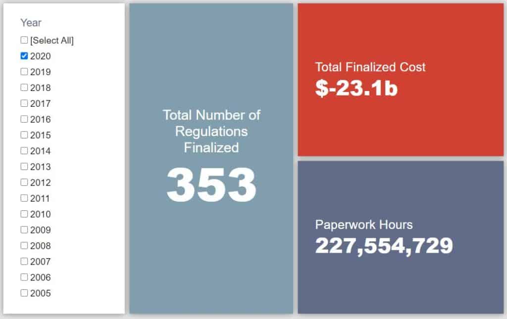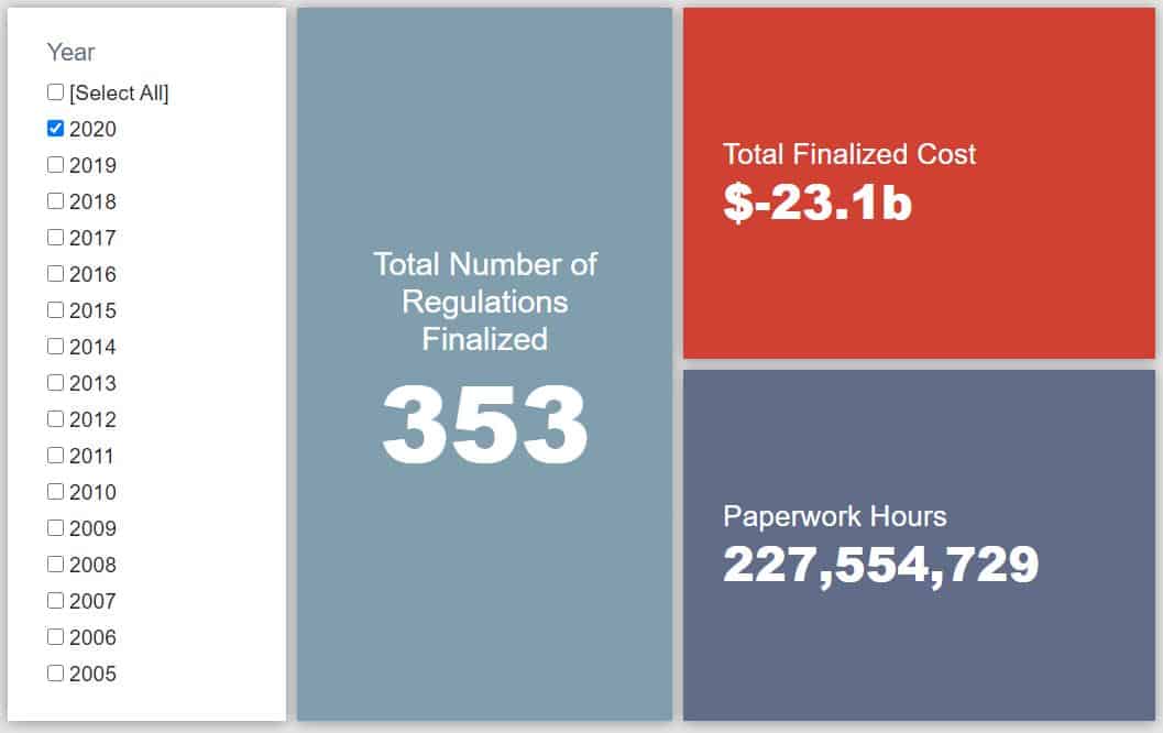 Since January 1, the federal government has published $5.7 billion in total net cost savings (with $23.1 billion from finalized rules) and 285 million hours of net annual paperwork burden increases (with 227.6 million hours due to final rules). Click here for the latest Reg Rodeo findings.