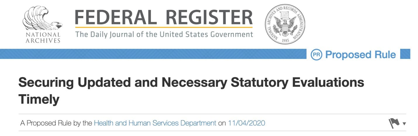 The proposed rule, “Securing Updated and Necessary Statutory Evaluations Timely,” if finalized, would mark the first time a federal agency would add expiration dates to most of its regulations, essentially forcing the agency to conduct a review of each regulation to see if it is still needed or should be modified. More information on the nuts and bolts of how the rule would work, and why HHS believes it is necessary, can be found here.