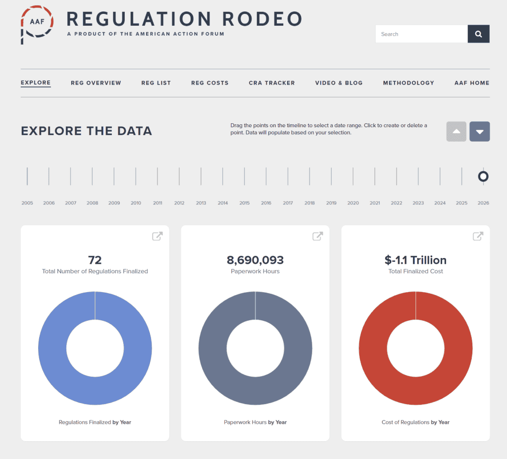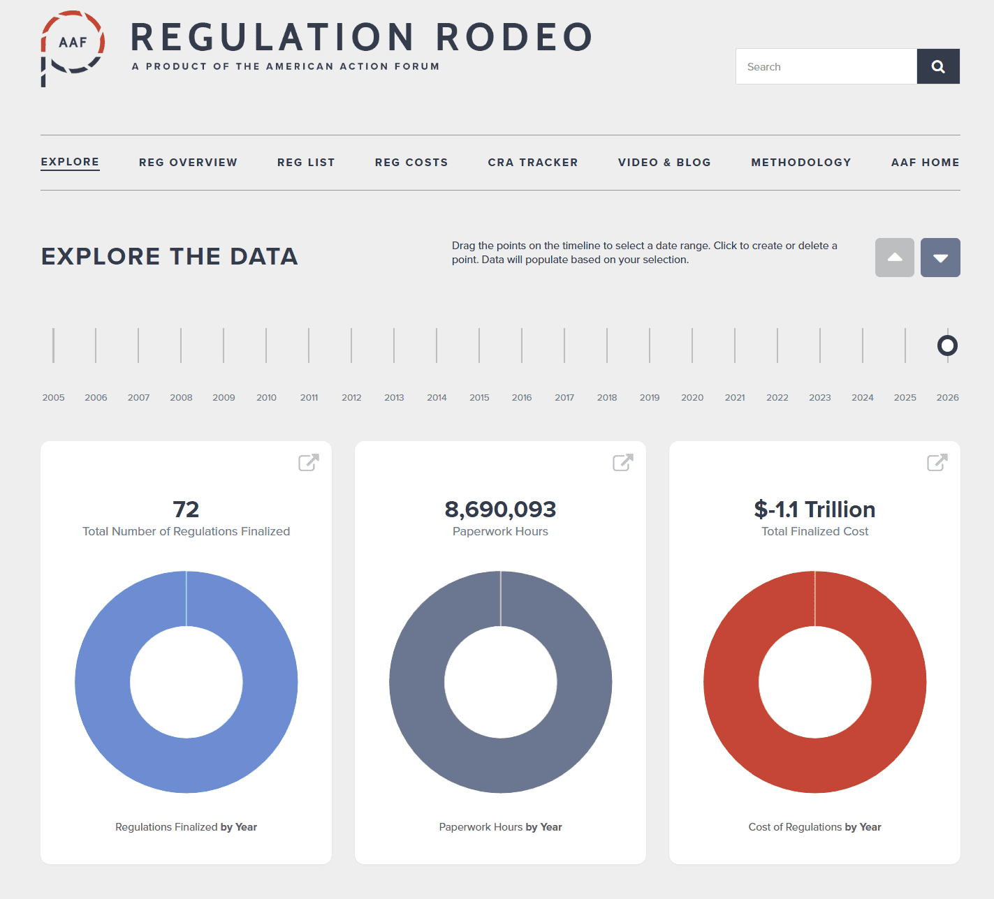 Since the start of 2026, the federal government has published $936.1 billion in total regulatory net cost savings (with $1.1 trillion in reductions from finalized rules) and 39.5 million hours of net annual paperwork increases (with 8.7 million hours coming from final rules).