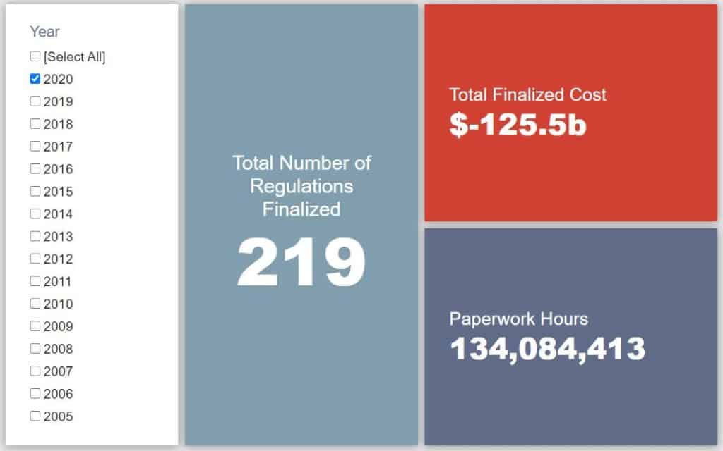 Since January 1, the federal government has published $117.6 billion in total net cost savings (with $125.5 billion from finalized rules) and 152.4 million hours of net annual paperwork burden increases (with 134.1 million hours due to final rules). Click here for the latest Reg Rodeo findings.